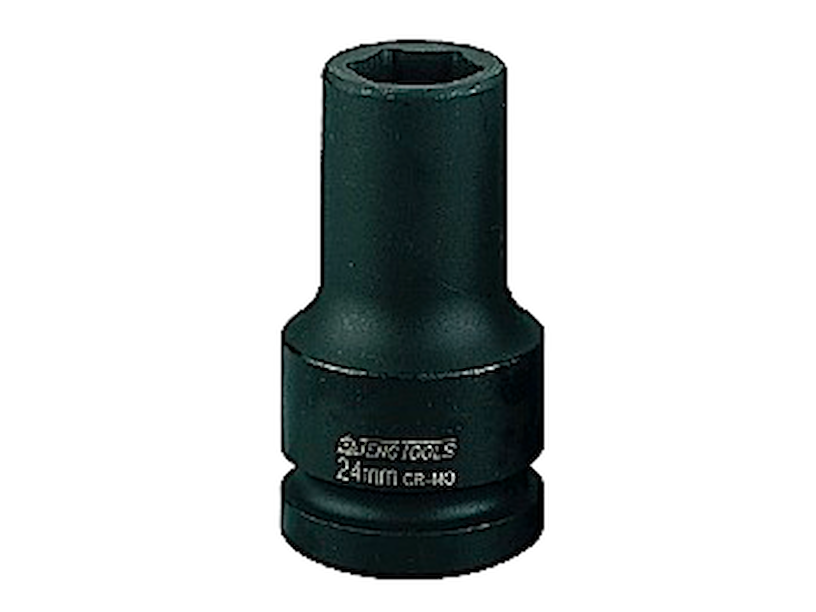 Slagtop af krom-molybdæn specialstål. Lang top med tynd væg samt sekskantet gribeåbning. Toppen er forsynet med hul til låsestifter, som låser toppen fast i maskinens firkantfæste. Sorte. DIN-standard.