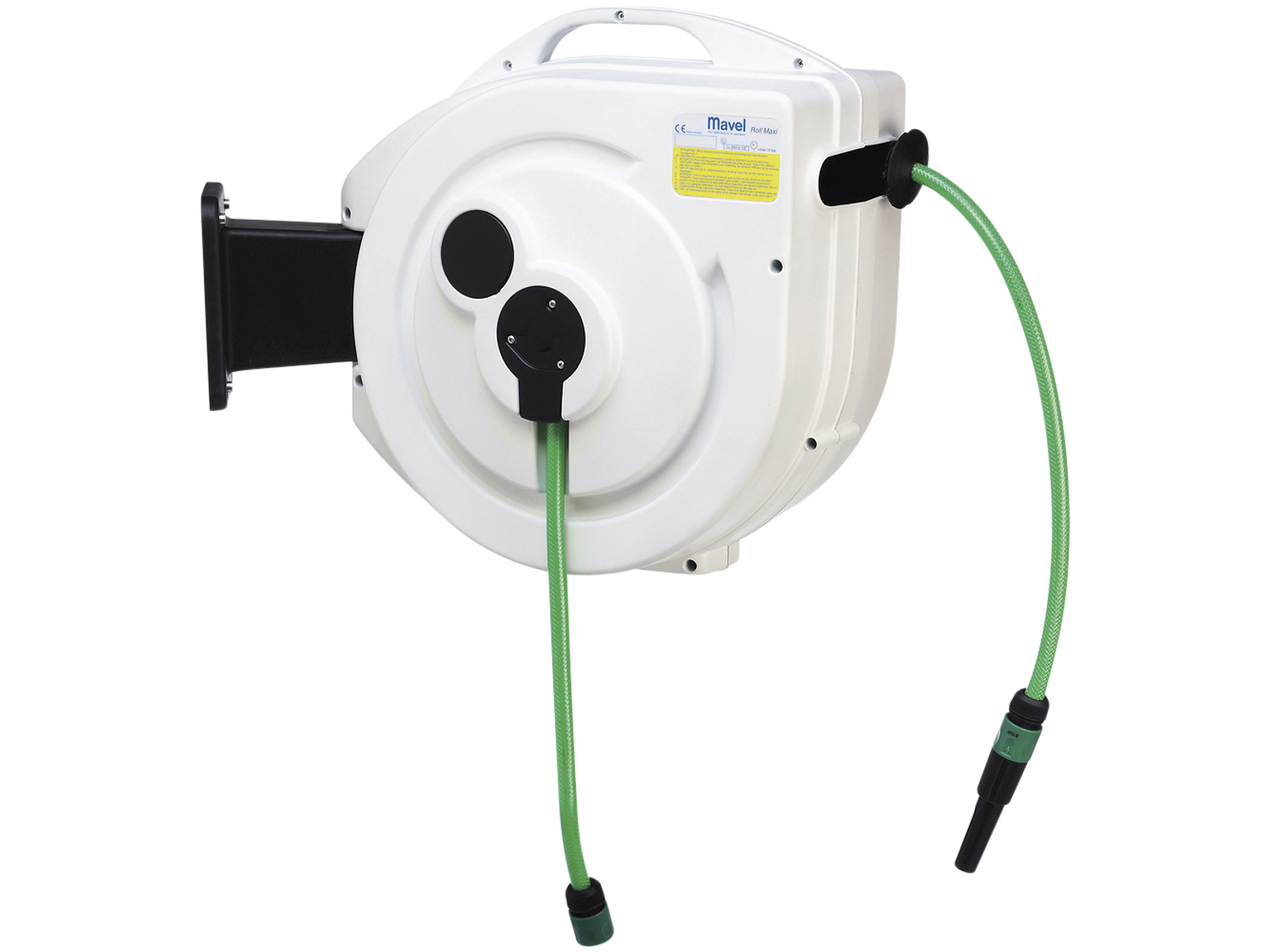 Automatisk slangeopruller, der leveres med 180° svingbart vægbeslag, slagfast kabinet og med aftageligt vægbeslag. Har automatisk stop, der kan frakobles, så der er konstant træk på slangen. Leveres med armeret PVC slange af høj kvalitet, automatisk slangefører, vandkobling og spulepistol. Fås i flere varianter.