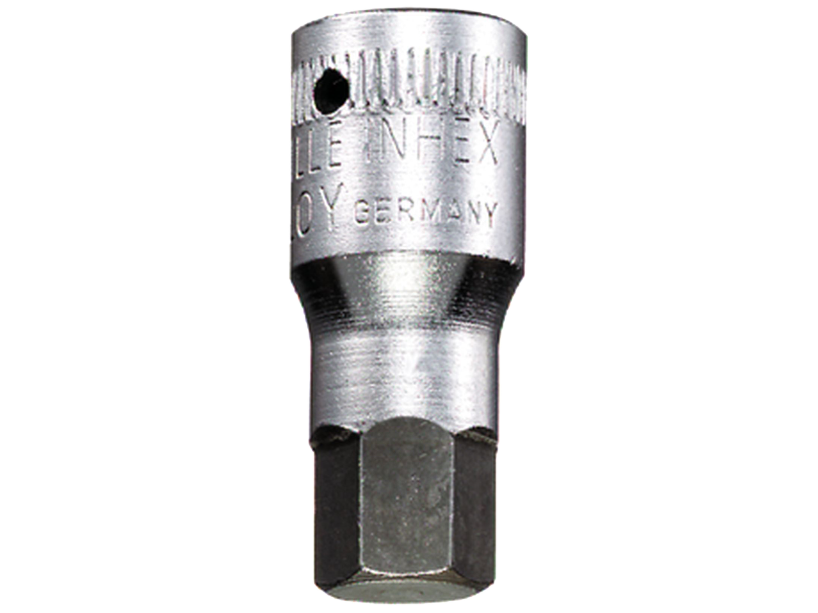 1/4", kort Inhex-top til skruer med indv. 6kt. Fremstillet af kromlegeret stål, forkromet.