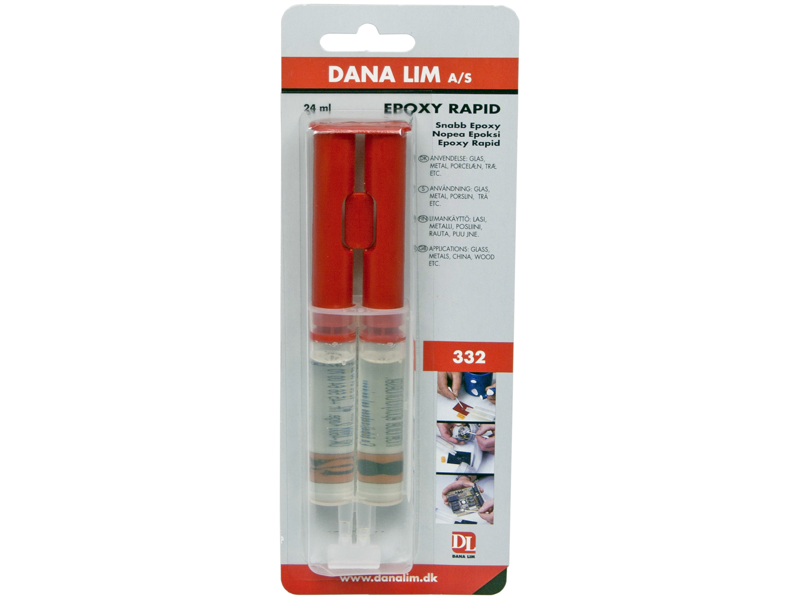 Epoxy Rapid 332 er en stærk hurtighærdende 2-komponent epoxylim, som er vandfast og tåler de fleste opløsningsmidler. Produktet kan slibes og overmales efter hærdning. Epoxy Rapid 332 anvendes til limninger hvor der stilles særlige krav til styrke og bestandighed. Velegnet til de fleste materialer, f.eks. metaller, træ, glas, porcelæn, læder og plasttyper som f.eks. hård PVC, polystyren, plexiglas, polyester.