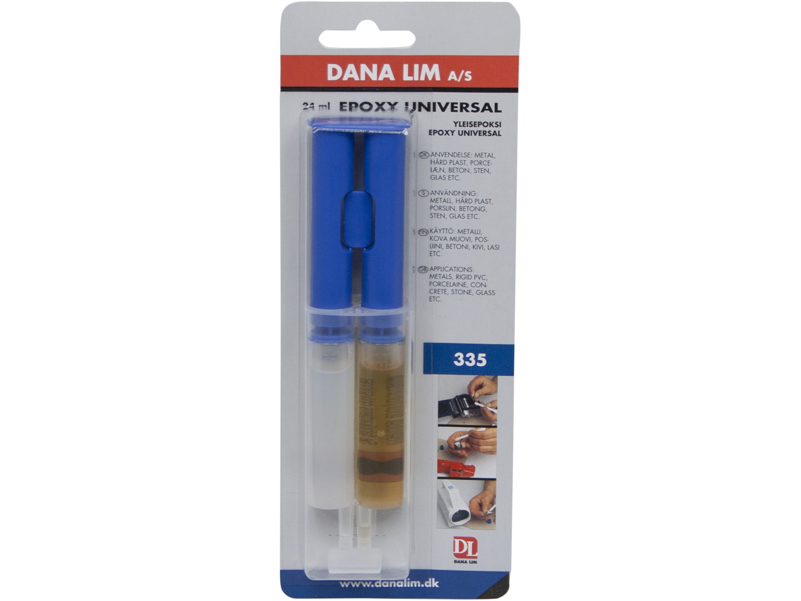 Ekstra stærk og bestandig 2-komponent epoxylim. EPOxy UNIVERSAL 335 anvendes til limninger, hvor der stilles ekstra høje krav til styrke og bestandighed. Velegnet til de fleste materialer, f.eks. metal, hård plast, porcelæn, beton, sten, glas m.m.