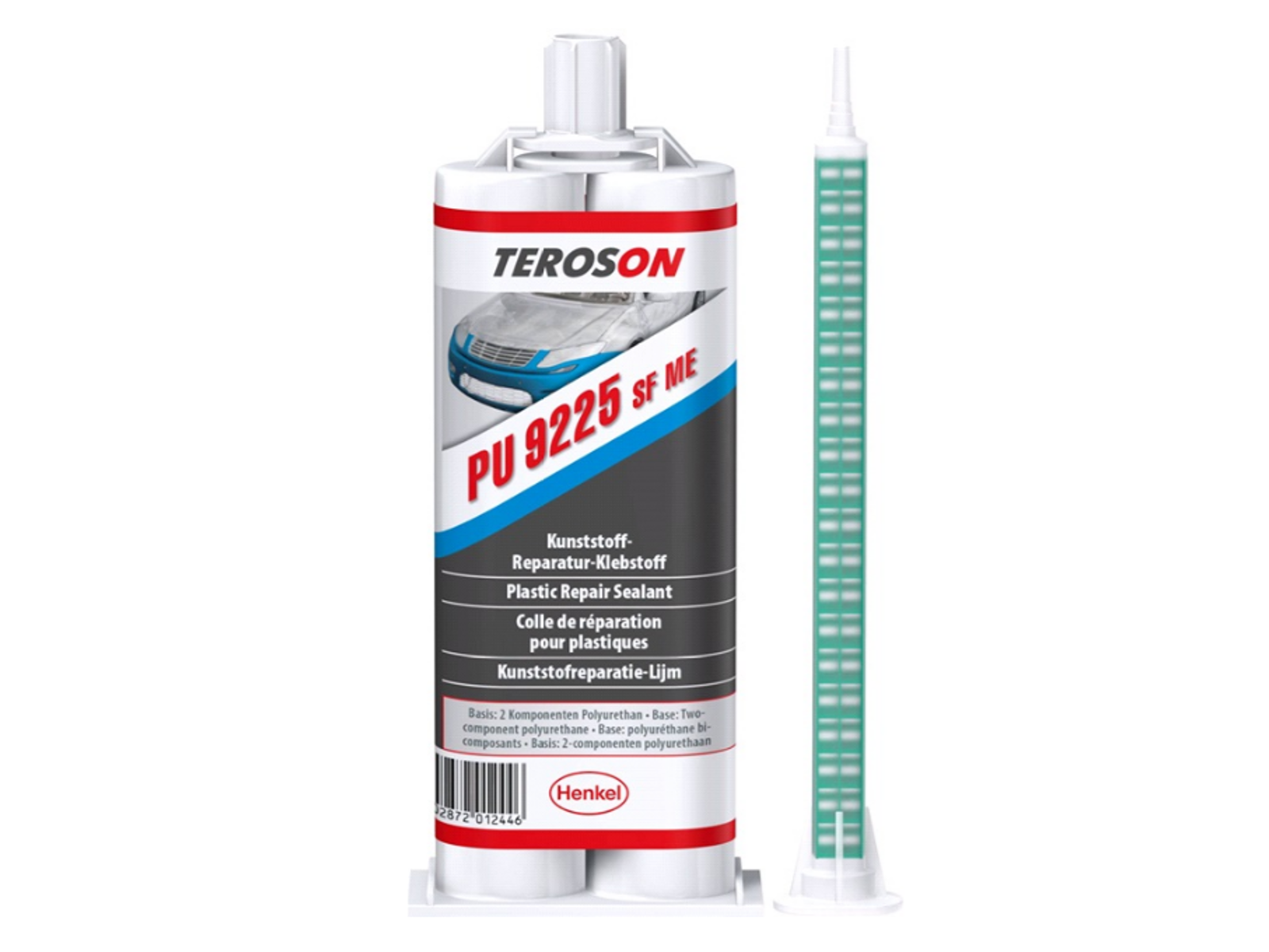 TEROSON® PU 9225 er en hurtighærdende tokomponent-reparationslim. Benyttes typisk til reparation af indvendige og udvendige plastdele, der kan lakeres, især til mindre skader som ridser, revner eller huller i kofangere, spoilere, skørter m.v. Kan hærdes med infrarødt lys ved +60 °C eller med Flexitherm varmelegemer. Nem påføring med TEROMIX HÅNDHOLDT PISTOL (50-ml-patroner) eller TEROSON® ET STAKU HÅNDHOLDT PISTOL (250-ml-patroner) og en egnet statisk blander. Overfladeklargøring med TEROSON® VR 10 anbefales.