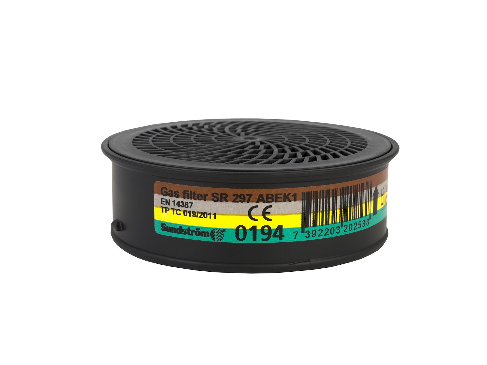 Gasfilter til brug sammen med Sundstrøm halv- og helmasker. Filteret er et type ABEK og beskytter mod følgende typer af gasser: