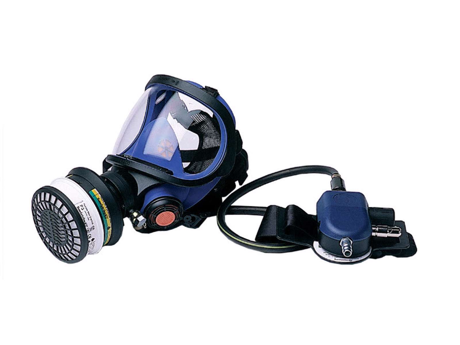Trykluftsforsynet helmaske (se SR 200) med kontinuerligt lufttilførsel, der kan sluttes til trykluft via rengøringsstation (SR 49, SR 79-H og SR 99). Et egnet standardfilter monteret i masken giver beskyttelse, hvis trykket forsvinder og ved bevægelse til og fra arbejdsstedet. I trange arbejdssituationer kan masken anvendes uden filter-backup med fronthullet stoppet til.
