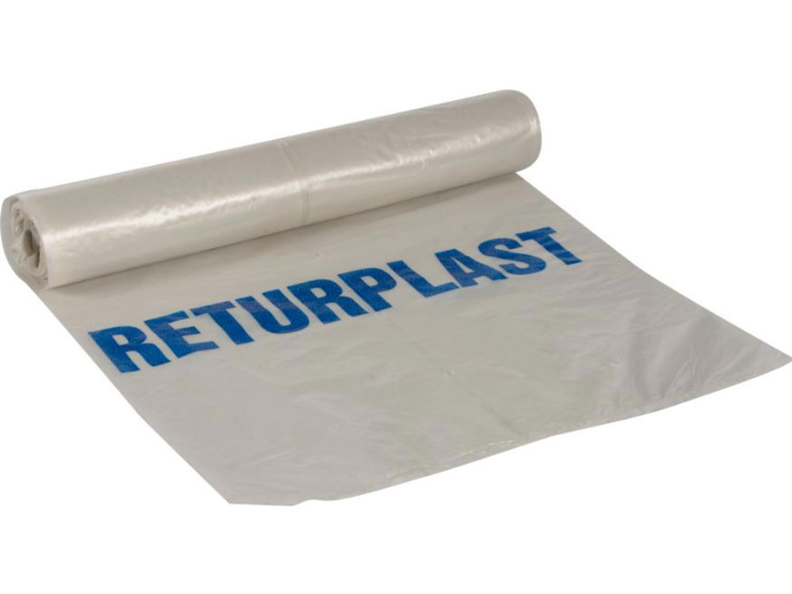 Affalssæk produceret af genanvendt plast. Sækken har perforerede huller, et praktisk knudehåndtag og er velegnet til opsamling af blandet affald.