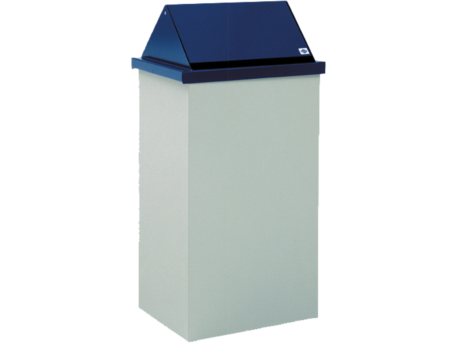 Fuldsvejst affaldsbeholder med vippelåg. Beholderen er forberedt til 80 L standard plastsæk. Fås også med hjul.