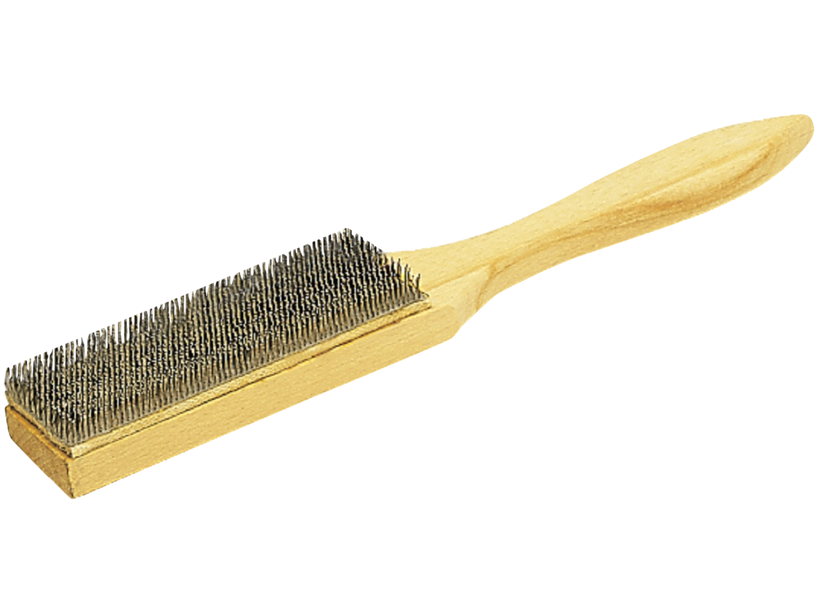 For rengøring af spåner på file etc. Jævnligt brug, sikrer godt fileresultat. Træbørste med stålbørster på en side.