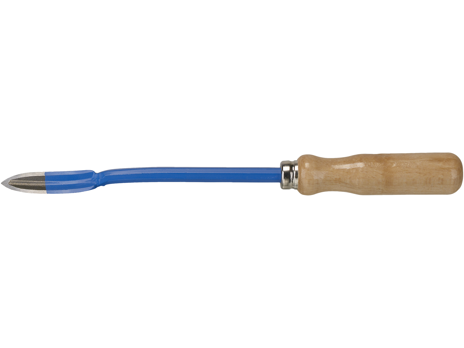 Med trekantede, bøjede, hulslebne skær. Af specialstål.