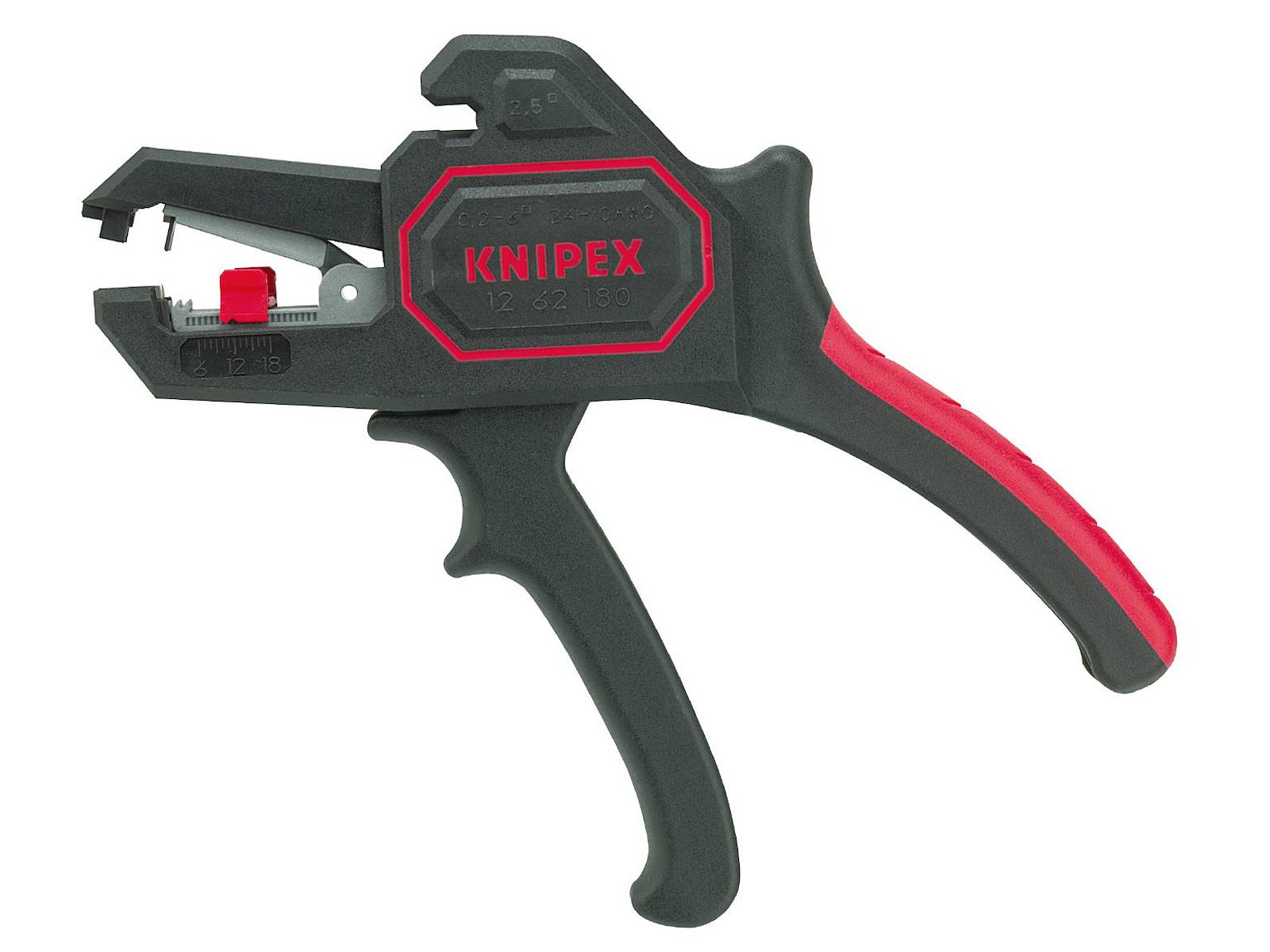 Automatisk afisoleringstang 180 mm. Kompakt standard-værktøj til favorabel pris, til alle almindelige kabeltværsnit og isoleringsmaterialer. Til en-, fler- og fintrådede ledere fra 0,2-6,0 mm² med standardisolering. Tilpasser sig af sig selv til de forskellige ledertværsnit, derfor ingen beskadigelse af lederne. Høj betjeningskomfort pga. handy form og lav vægt. Slank hovedform til brug på vanskeligt tilgængelige arbejdsområder. Med trådklipper til Cu- og Al-ledere op til max 2,5 mm². Med indstilleligt længdeanslag fra 6,0-18,0 mm til ens afisoleringslængder ved seriearbejde. Hus i kunststof, glasfiberarmeret. Kniv i special-værktøjsstål, oliehærdet, kan udskiftes.
