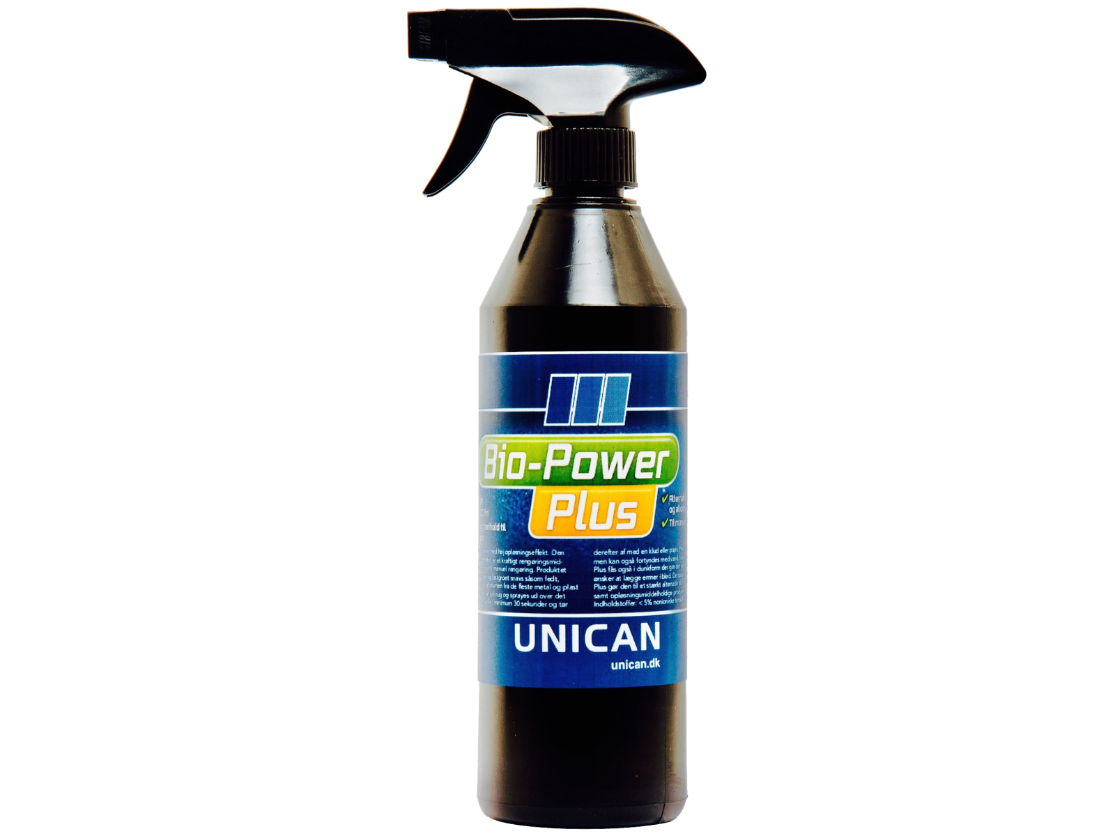 Bio-Power Plus er en rensevæske med høj opløsningseffekt. Den vandklare mikro-emulsionsaffedter, er et kraftigt rengøringsmiddel til anvendelse i rensebar eller til manuel rengøring. Produktet fjerner selv stærke forureninger og fastgroet snavs såsom fedt, gummistriber/spor, voks, olie og bitumen fra de fleste metal og plast overflader. Produktet fungere ydermere super effektivt som fælgrens og til fjernelse af insektrester fra frontrude og kølerhjelm. Bio-Power Plus er klar til brug og sprayes ud over det tilsmudsede område. Lad det virke i minimum 30 sekunder og tør derefter af med en blød klud. Produktet kan anvendes direkte, men kan også fortyndes med vand, hvis dette ønskes. Bio-Power Plus fås også i dunkform, som gør det perfekt til rengøring, hvor man ønsker at lægge emner i blød. De naturlige ingredienser i Bio-Power Plus gør den til et stærkt alternativ til traditionelle alkaliske affedtere samt opløsningsmiddelholdige produkter. Indholdstoffer: < 5% nonioniske tensider. Fås i