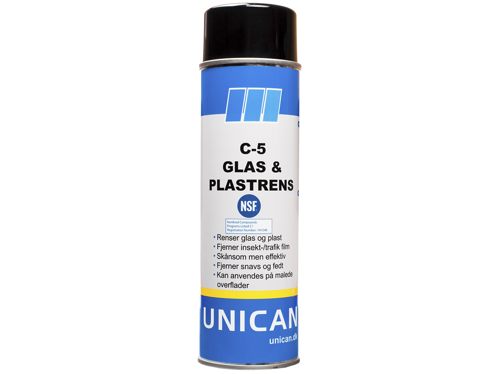C-5 Glas og Plast rens er et effektivt, lugtsvagt og skånsomt rensemiddel til rengøring af glas, spejle, laminat, lakerede overflader, plastik mv. C-5 kan med stor succes bruges til rengøring af skærmkabinetter, plastik-vinduer og døre mv. C-5 efterlader en skinnende ren overflade og fjerner yderst effektivt trafikfilm samt insektrester fra frontruder. Ved brug på spejle og glas efterlader C-5 ingen striber. Ryst dåsen grundigt inden brug, påfør C-5 i en afstand af 15-20 cm, lad det sidde 30 sekunder, aftør derefter med en ren tør klud. Bemærk: Kan påvirke/fjerne anti-statiske/-reflex belægninger samt påvirke visse plexiglas typer.