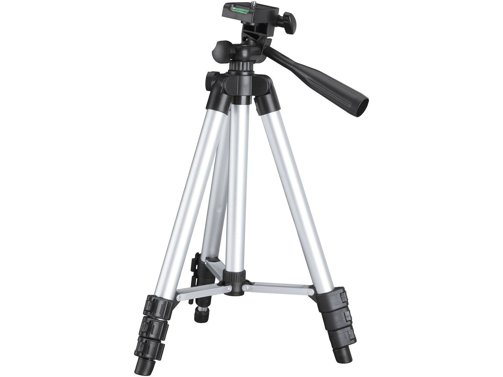 Aluminiumtrefod til linjelasere. Monteringsskruegevind 1/4''. Finindstilling af højde via midterstangen og grebet.