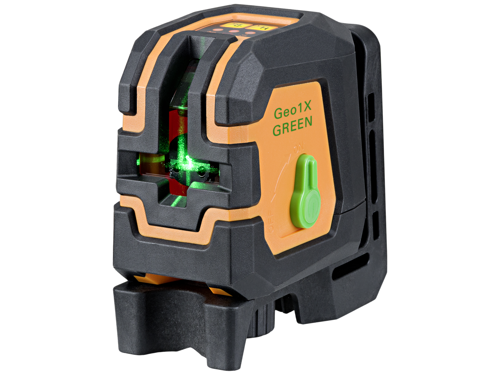 Geo1X krydslaser er en letbetjenelig laser med grønne laserlinjer, som gør den tydelig og nem at se. Denne krydslaser er ideel til brug ved indendørs nivelleringsopgaver. Én lodret og én vandret laserlinje som kan danne et laserkryds . Selvnivellerende funktion kan låses til manuel brug. Ekstra lang rækkevidde på 70 mtr. med modtager (tilkøb). Nøjagtighed ±3 mm/10 mtr. Selvnivelleringsområde ±3°. Alarm hvis uden for selvnivelleringsområdet. Robust gummihus i klasse IP54. 5 timers driftstid. Funktionsbeslag med magneter på bagsiden, skruehul og stativgevind 1/4" og 5/8". Levers med væg/stativbeslag, 4× AA alkaline batterier og blød taske.