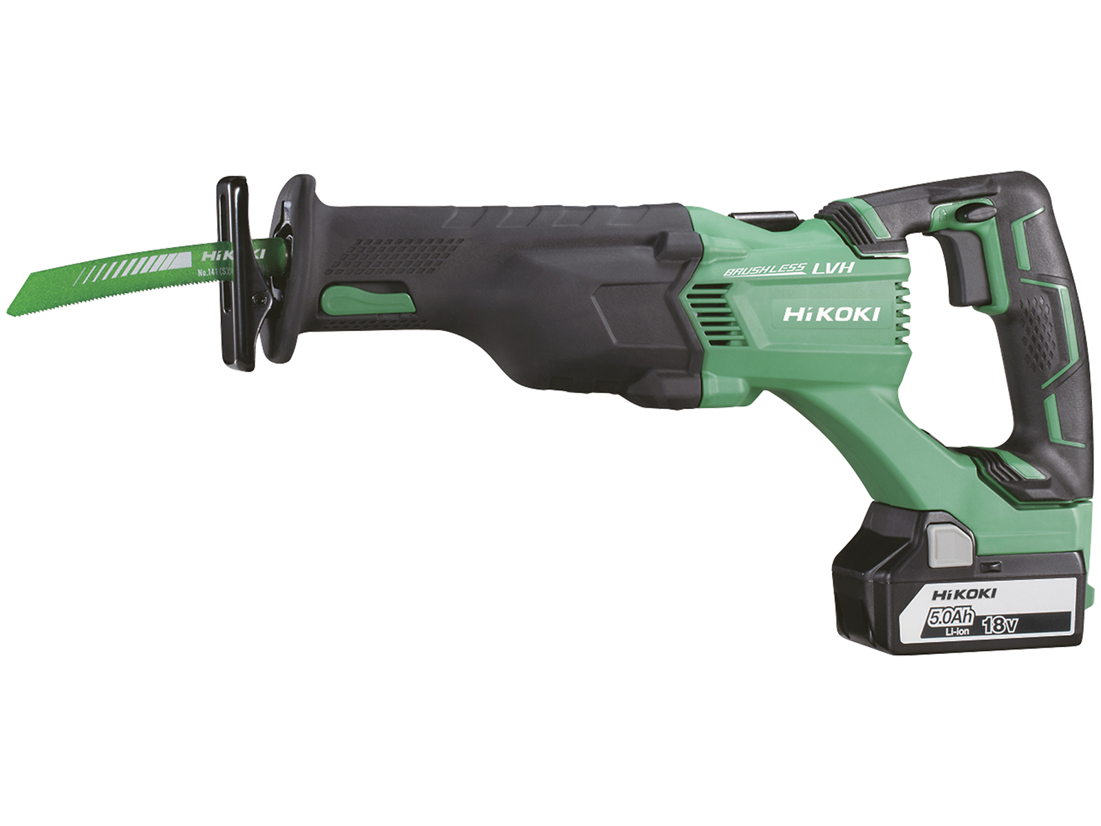 Kulfri motor. LVH (Low Vibration Handle) - gummieret vibrationsdæmpet håndtag for komfortabel brug. Auto mode for automatisk hastighedsregulering i forhold til arbejdsbelastning (1.600 – 2.500 /min). Kapacitet i træ/stål/stålrør 120/19/130 mm. Max hastighed 0 - 1.600, 0 - 2.300, 0 – 2.500 /min (auto mode 0-1.600, 0-2.500 /min). Slaglængde 32 mm. Vægt inkl. batteri 3,4 kg. Leveres med 2 stk. 5,0Ah li-ion slide batterier, luftkølet hurtiglader, bajonetsavklinge, nøgle og stabelkasse (HSC4)