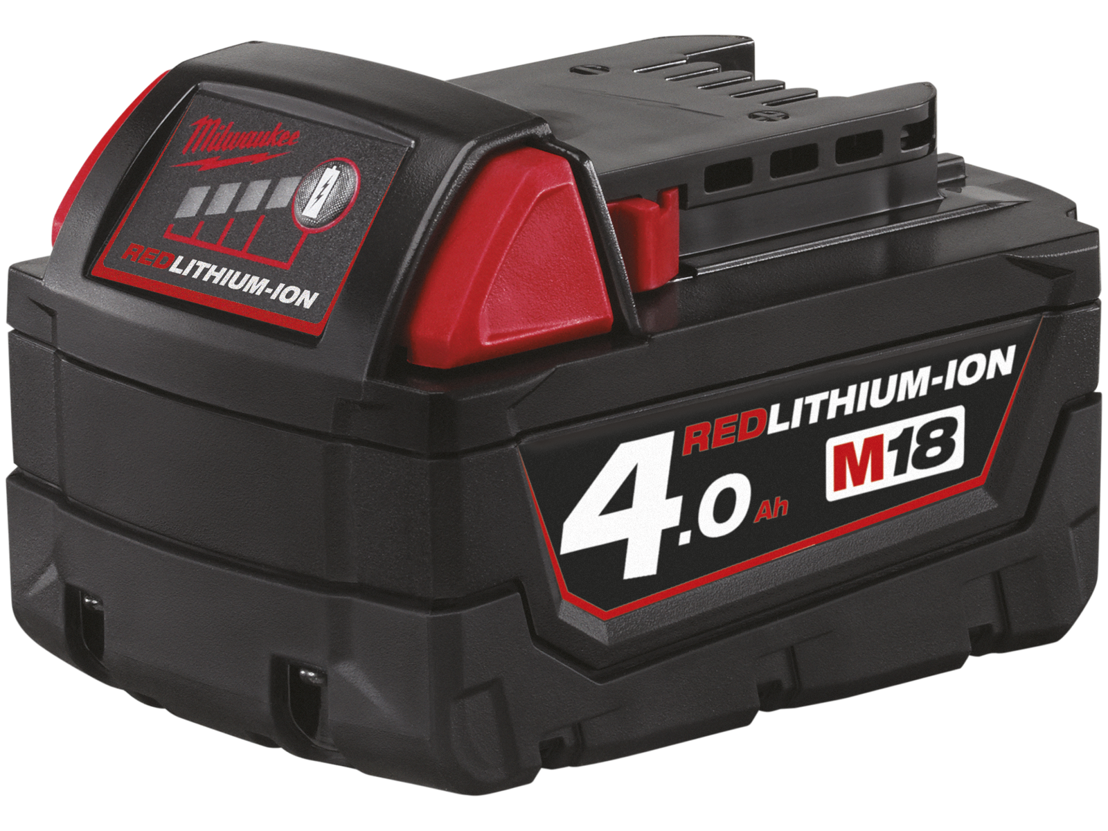 18 V. 4,0 Ah Red Lithium Ion batteri med høj ydeevne, lang driftstid og øget holdbarhed. Strømindikator der viser hvor meget strøm, der er tilbage på batteriet.