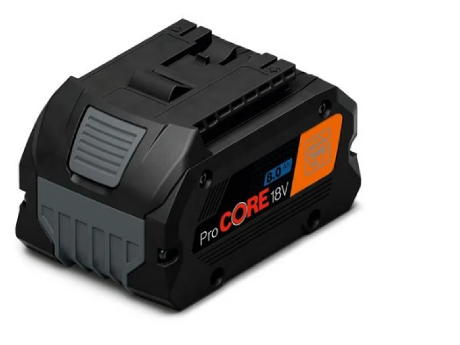 ProCORE li-ion-batteri med Highpower-celler, ladetilstandsindikator og "Electronic Cell Protection" (ECP). ECP beskytter batteriet mod overbelastning, overophedning og dybdeafladning. COOLPACK 2.0-teknologien sørger for en 135 % længere batterilevetid sammenlignet med genopladelige batterier uden COOLPACK-teknologi og muliggør dermed længere driftstider. Kompatibel med alle batteridrevne 18 V-apparater med AMPShare eller Bosch Professional 18 V grænseflade for genopladeligt batteri.