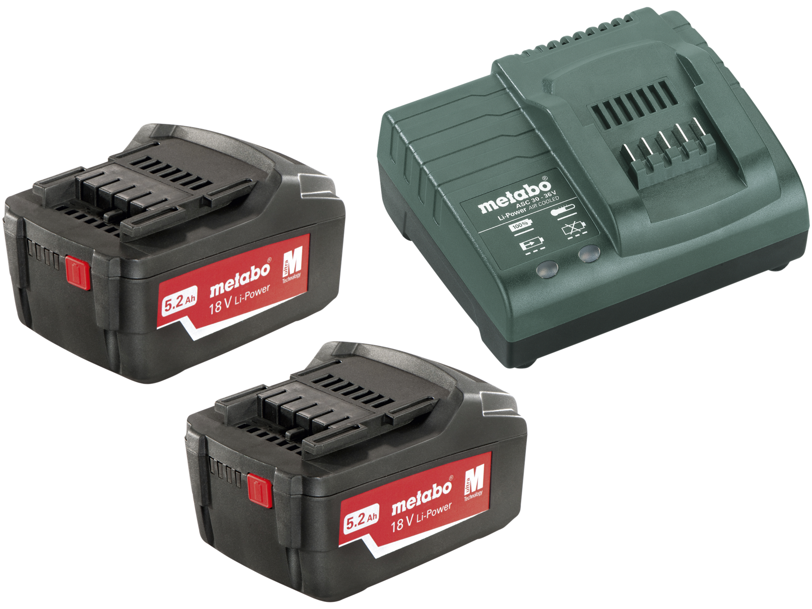 Batteri Basic-sæt med 2 × Li-Power batteri 18V/5,2 Ah og oplader ASC 30-36 V. Batteri: Ultra-M-teknologi: Intelligent batteristyring for langtidsholdbare batterier, patenteret "AIR COOLED" opladningsteknik, permanent elektronisk enkeltcelleovervågning (ESCP) under opladningen, processorstyret styring af opladning og afladning, kapacitetsvisning til permanent kontrol af opladningstilstanden, kan opbevares længe næsten uden at aflades. Oplader: patenteret "AIR COOLED" opladningsteknik, ladestrøm 3,0 A, meget lavt strømforbrug ved stand-by, processorstyret opladningssystem, netspænding 230 - 240 V, netfrekvens 50 - 60 Hz.