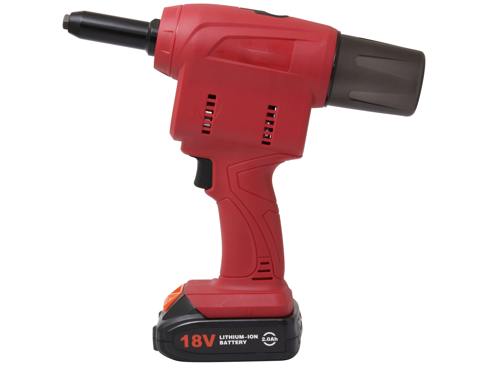 Flair 18 volt akku-blindnittepistol 4,8-6,4 mm. Leveres komplet i kuffert med 1 times oplader og 2 stk 2 Ah lithium batterier. Håndværker model, som opererer med næsten alle slags nitter inkl. aluminium, stål, rustfrit stål og kobber. 500-2000 stk nitter pr. opladning.