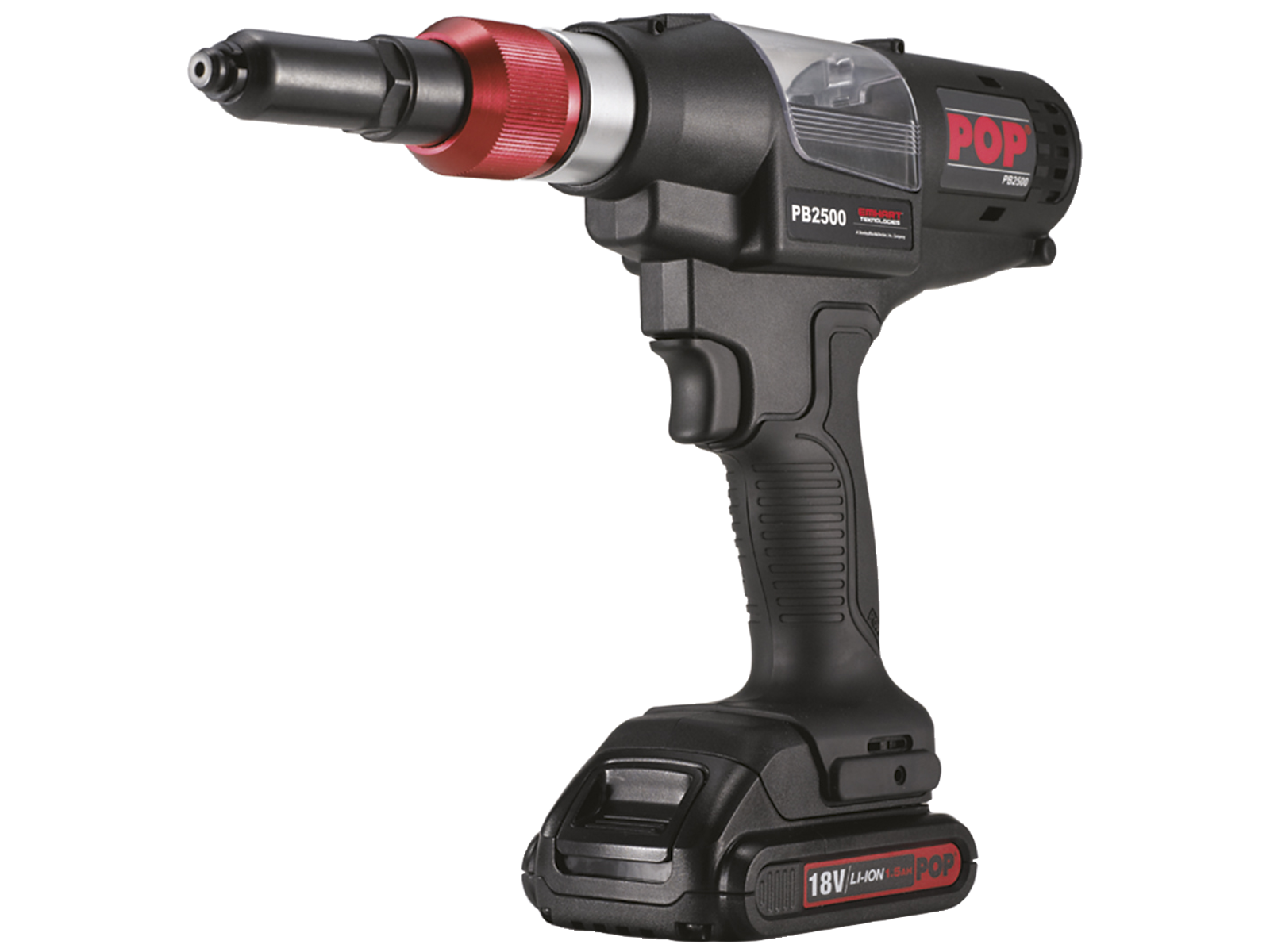 En batteridrevet nittepistol med li-ion batteri og kulløs motor, til montering af POP nitter. Ideelt til steder hvor der ikke er adgang til luft. Ergonomisk og let værktøj med en slaglængde på 25 mm. li-ion batteriet er på glideskinne og oplades på kun 30 minutter. Holder på nitten inden montering. Trækstifter opsamles i den integrerede stiftopsamler.