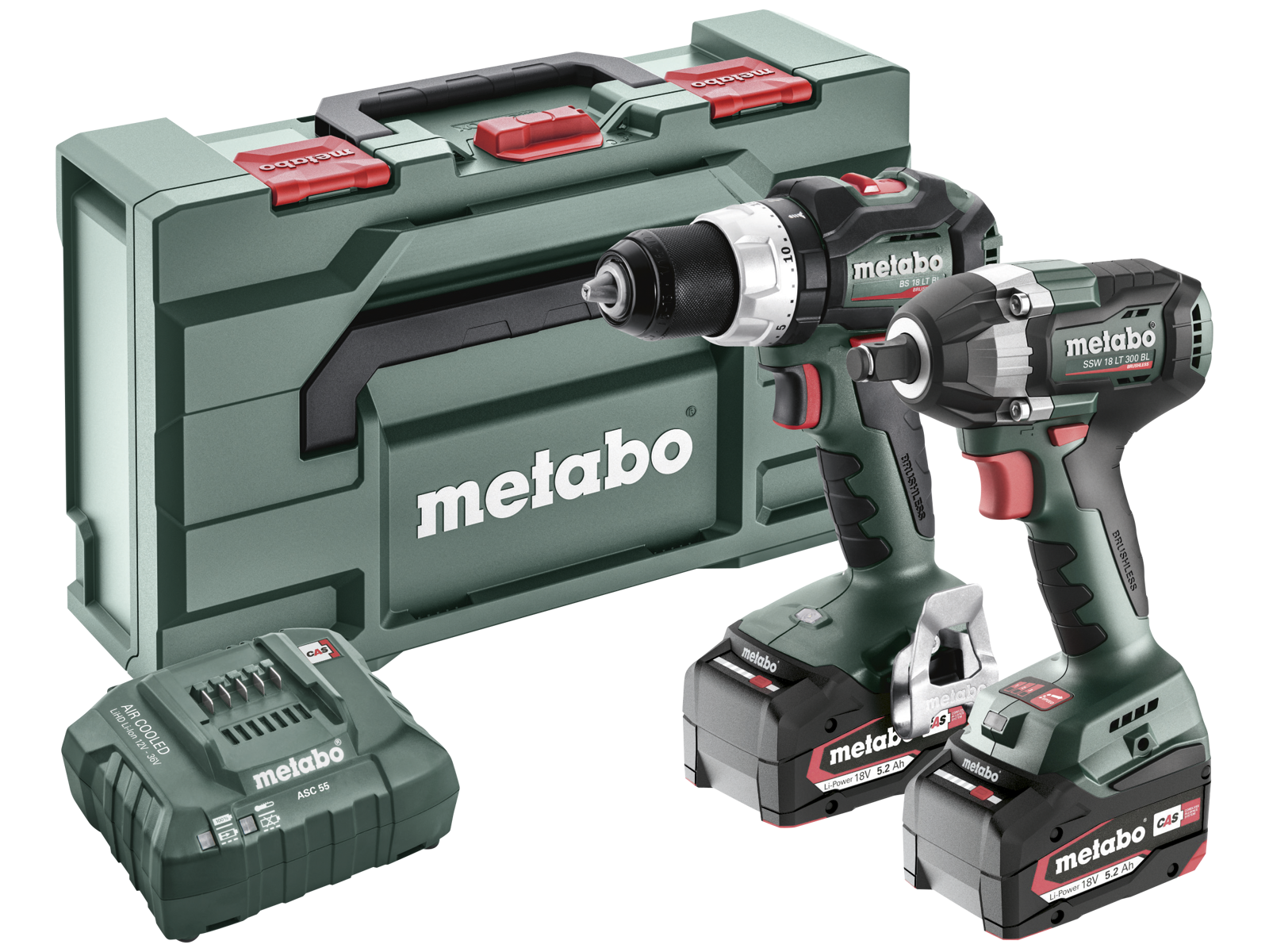 Combo-sæt med kompakt akku-slagnøgle SSW 18 LT 300 BL med 1/2" 4kt og 300 Nm moment samt børsteløs akku-bore-/skruemaskine BS 18 LT BL med optimal effekt til de hårdeste anvendelser. Leveres inkl. 2 stk. Li-power batterier (18 V/5,2 Ah) og lader ASC 55.