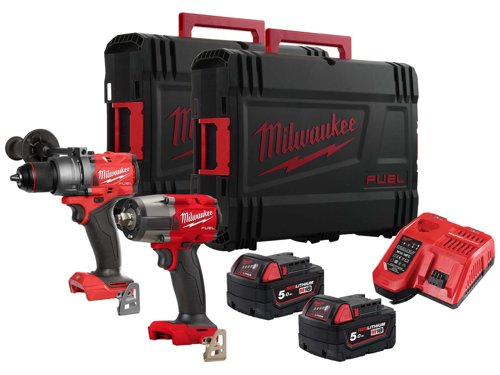 PowerPack maskinsæt M18 FPP2F3-502X med M18 FPD3 Fuel slagboremaskine og M18 FMTIW2F12 FUEL 1/2" mellemstor slagnøgle med friktionsring. Ekstremt kraftfuld slagboremaskine med drejningsmoment på hele 158 Nm. Kompakt design med længde på 175 mm - for lettere adgang på trang plads. Autostop beskytter mod overrotation ved fastkøring - dedikeret autostop-lys der viser, hvis beskyttelsen har været aktiv. 13 mm metalborepatron for let skift af bits og bor. Alsidig slagnøgle med 881 Nm i løsrivningsmoment og 745 Nm i tilspændingsmoment. Ekstremt kompakt design med totallængde på kun 152 mm giver adgang på trang plads. 4-trins Drive Control maksimerer slagnøglens alsidighed med 4 hastigheds- og momenttrin. Fjernelse af bolte giver fuld moment-effekt, mens hastigheden nedsættes så snart bolten er løs så den ikke tabes. Autostop-trin med maks. 47 Nm så der ikke risikeres overstramning af bolte. 3× LED giver optimalt arbejdsbelysning. 1/2" 4kt med friktionsring. Begge maskiner med kulfri Powerstate motor og Redlink Plus elektronik samt fleksibelt batterisystem: passer med alle Milwaukee M18 batterier.