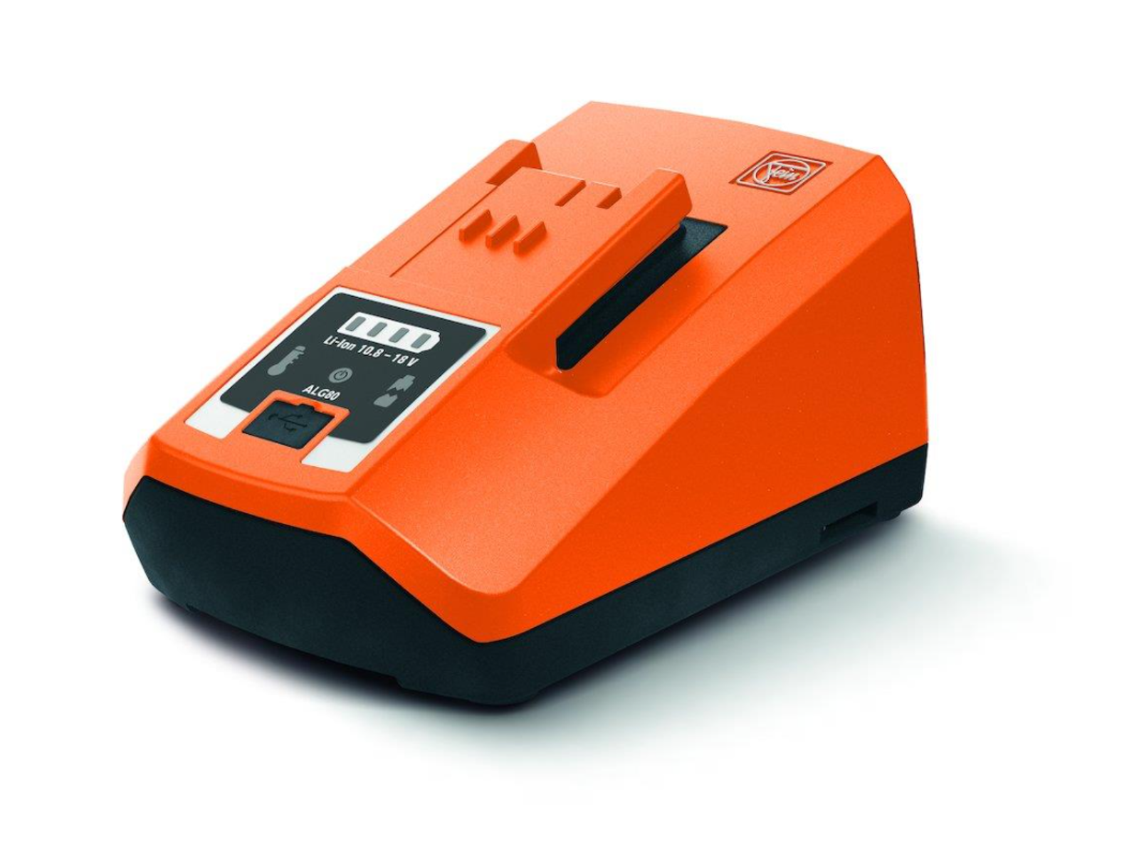 Hurtiglader med korte ladetider på grund af den høje ladestrøm på 8 ampere og processtyret opladning. Stort LED-display med visning af opladningsstatus og USB-tilslutning til mobil opladning af små elektriske enheder som smartphone eller tablet. Til alle genopladelige Fein li-ion batterier.