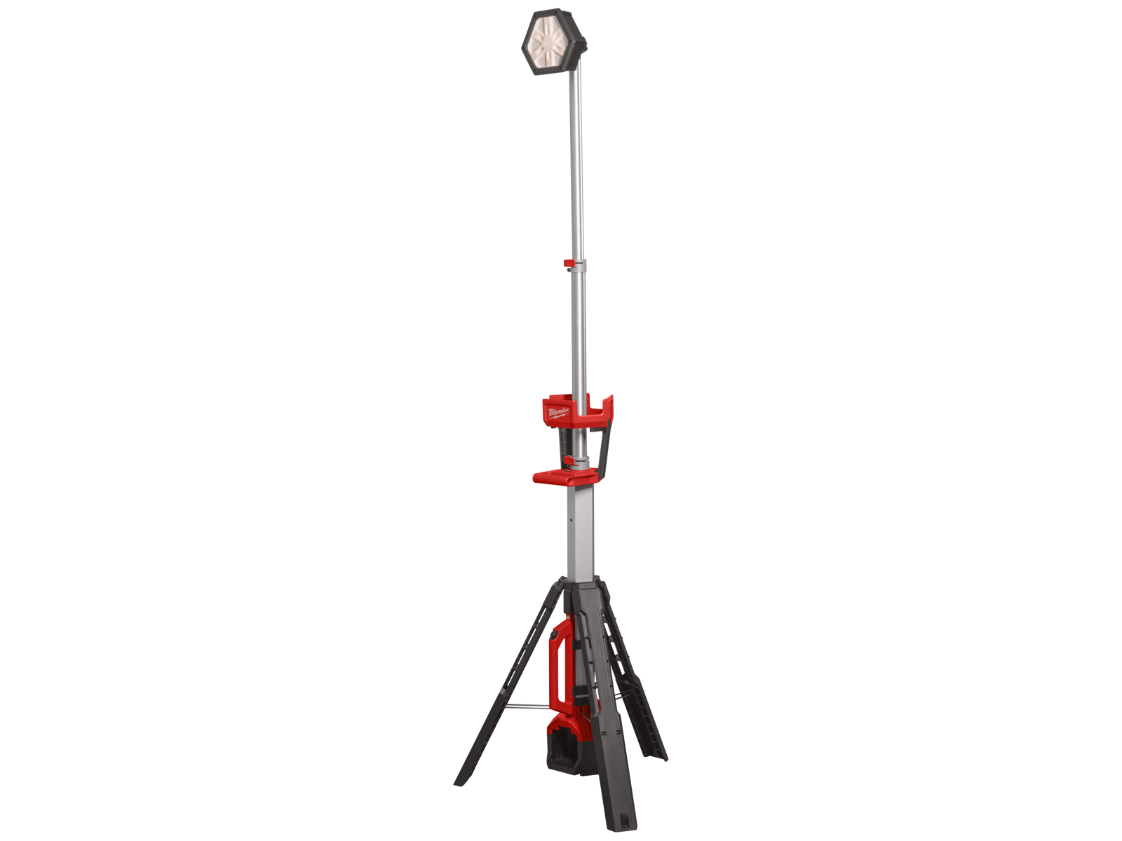 • M18 Trueview lystårn med tre lysindstillinger: 2.800 lumen på højeste niveau, 1.300 lumen ved middel og 860 lumen ved laveste niveau. Slagfast, justerbart hoved, der kan drejes 230° lodret og 240° vandret. Kan forlænges fra 1,10 mtr. til over 2,20 mtr. for at oplyse større arbejdsområder.IP54-klassificering. Leveres uden batterier og lader.