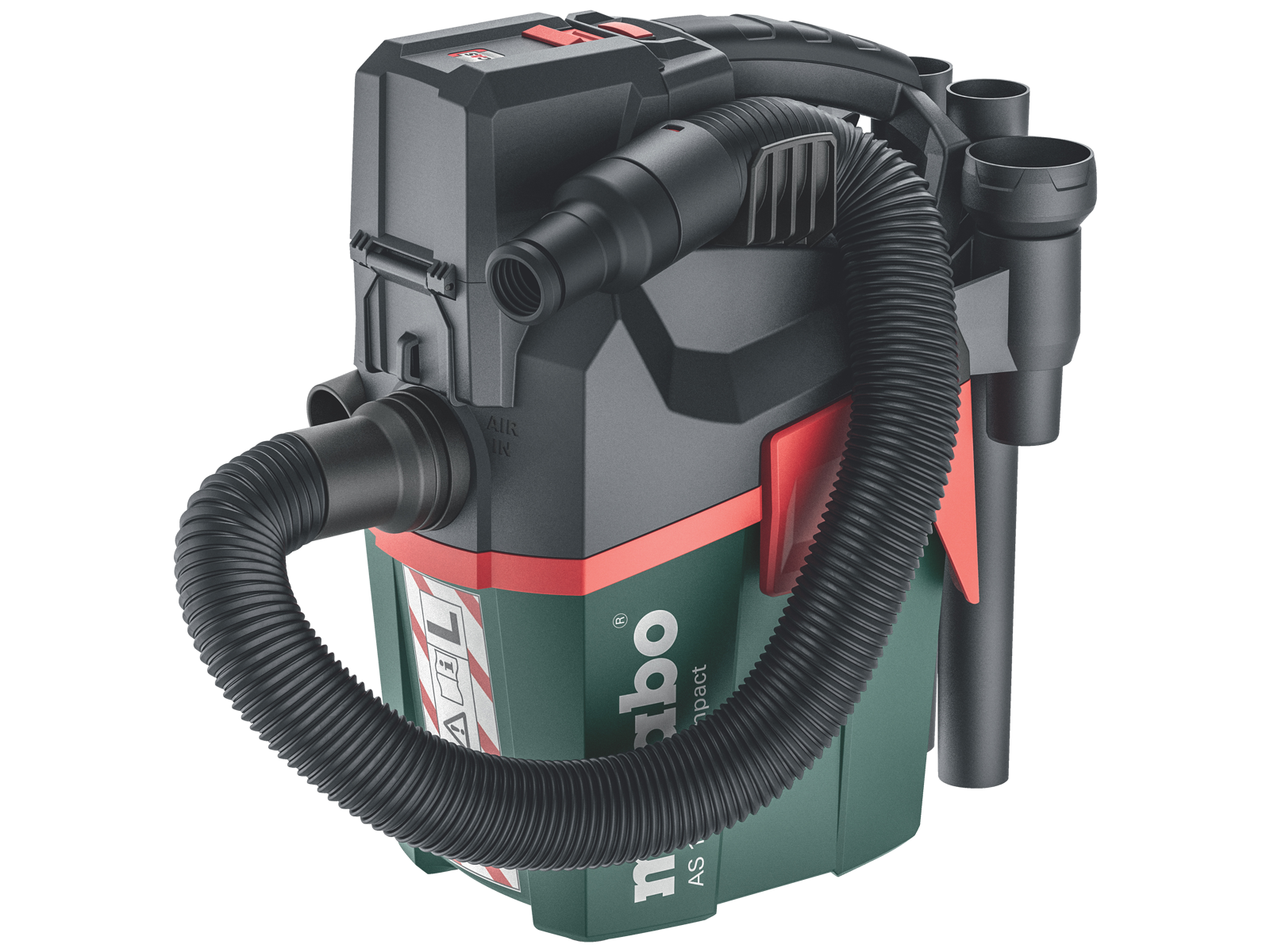 Bærbar, praktisk akku-udsugning til våd- og tørsugning (IPX4), ideel til mindre rengørings- og sugearbejde. Akku-udsugning, der er godkendt til erhvervsmæssig brug, certificeret til støv i støvklasse L. Manuel filterrensning ved hjælp af stærk luftstrøm ved betjening af kontakt på sugeren i arbejdspauserne. Med integreret blæsefunktion til udblæsning, tørring og udledning af afgangsluft. Eco-modus for længere driftstid pr. batteriopladning, boost-modus for maksimal kapacitet. Med strækslange, der sikrer nem håndtering og maksimal bevægelsesfrihed ved sugning. Støv- og sprøjtevandsikkert batterirum med klap, der kan lukkes. Slange, rør og mundstykker kan opbevares direkte på udsugningen. Nem transport med ergonomisk bæregreb eller bærerem. Batterispænding 18 V. Maks. luftydelse 2.100 ltr./min. Leveres inkl. sugeslange med stræk (ø32 mm/0,5-2,5 mtr.), 3 sugerør af plast, mellemmuffe, fiberfilterposer, sugemundstykke (bredde 120 mm), fugemundstykke, bærerem, tilslutningsmuffe indv. ø28 mm/udv. ø35 mm. Uden batteri og lader.
