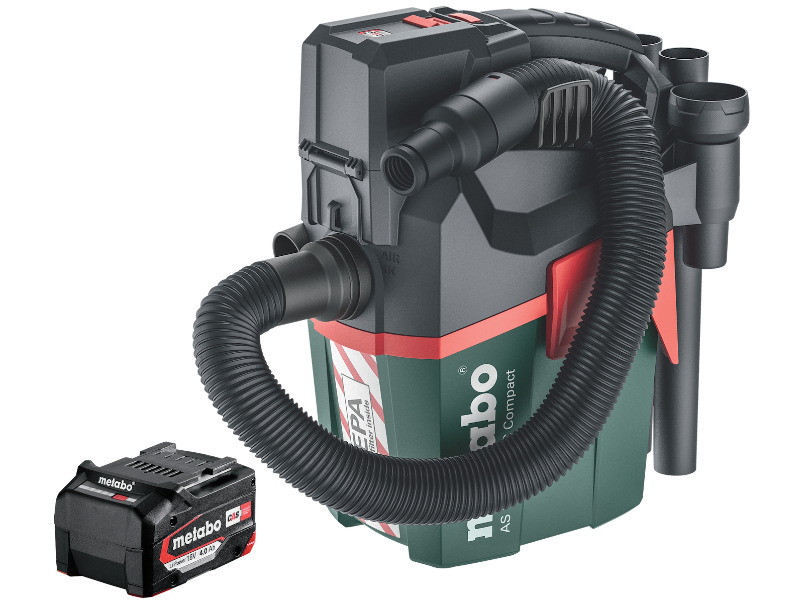 Sampak med mini-støvsuger og batteri. Bærbar, praktisk støvsuger med HEPA-filter til våd- og tørsugning (IPX4) - ideel til mindre rengørings- og sugearbejde. Forsynet med HEPA filter, som holder 99,95 % af finstøvet tilbage. PressClean manuel filterrensning ved hjælp af stærk luftstrøm ved betjening af kontakt på sugeren i arbejdspauserne. Integreret blæsefunktion til udblæsning, tørring og udledning af afgangsluft. Eco-modus for længere driftstid pr. batteriopladning, boost-modus for maksimal kapacitet. Med strækslange, der sikrer nem håndtering og maksimal bevægelsesfrihed ved sugning. Støv- og sprøjtevandsikkert batterirum med klap, der kan lukkes. Slange, rør og mundstykker kan opbevares direkte på støvsugeren.