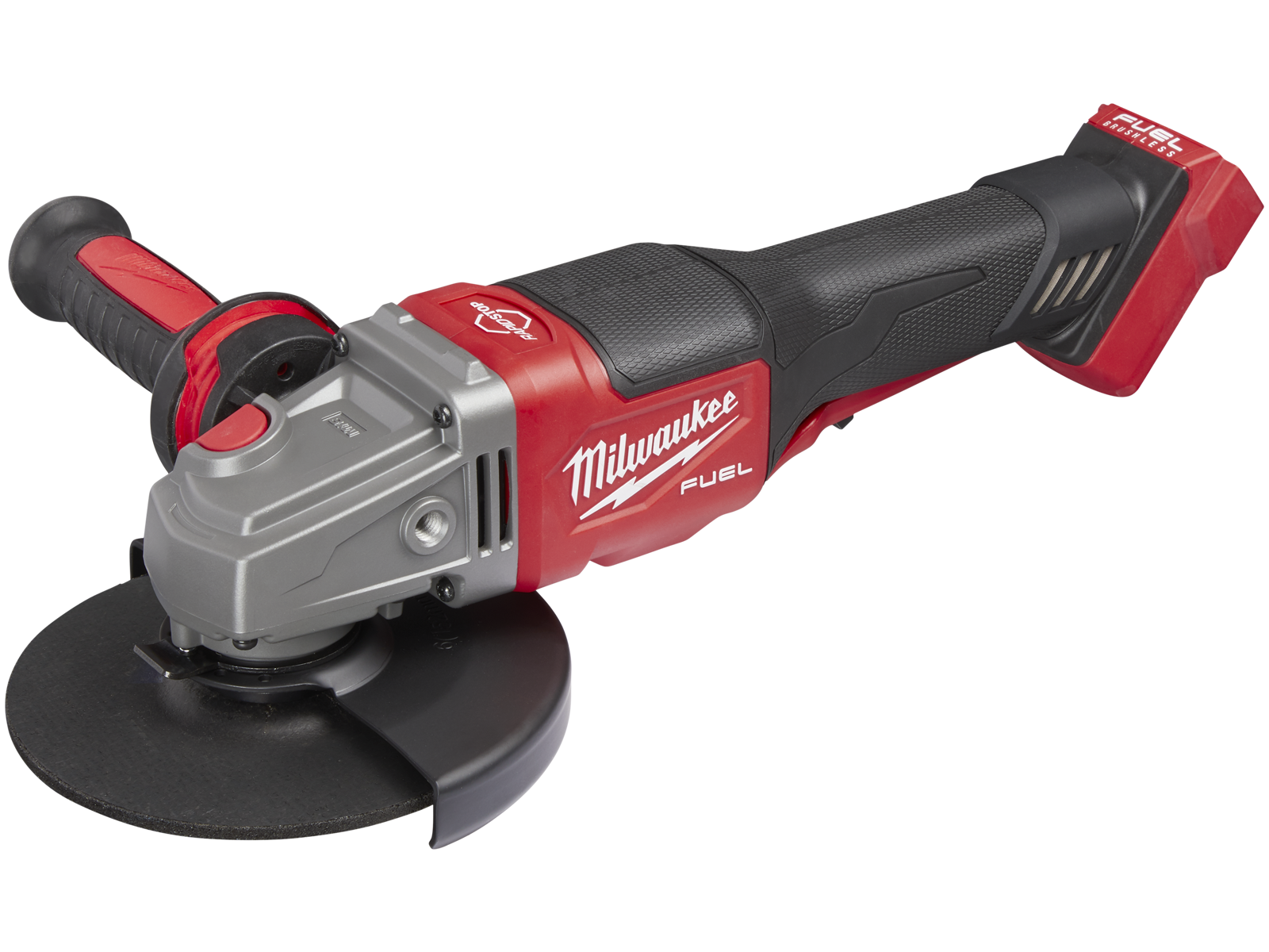Lille M18 Fuel vinkelsliber med motorbremse og stor afbryder. M18 High Output vinkelsliber med kraft nok til at slibe og til at lave op til 145 snit pr. opladning (5,5 Ah) i 2" elektrisk rør. Rapidstop motorbremse stopper skiven på 2,5 sekunder for optimal brugerbeskyttelse. Kulfri Powerstate motor med RedlinkPlus elektronik. Stor ikke-låsbar afbryder med line-lock-out der forhindrer utilsigtet opstart. Anti-vibrations-støttegreb for mindre vibration. Fixtec-skiveskift uden brug af nøgle/værktøj. 125 mm beskyttelsesskærm der justeres uden brug af nøgle/værktøj. Leveres uden batteri og lader.