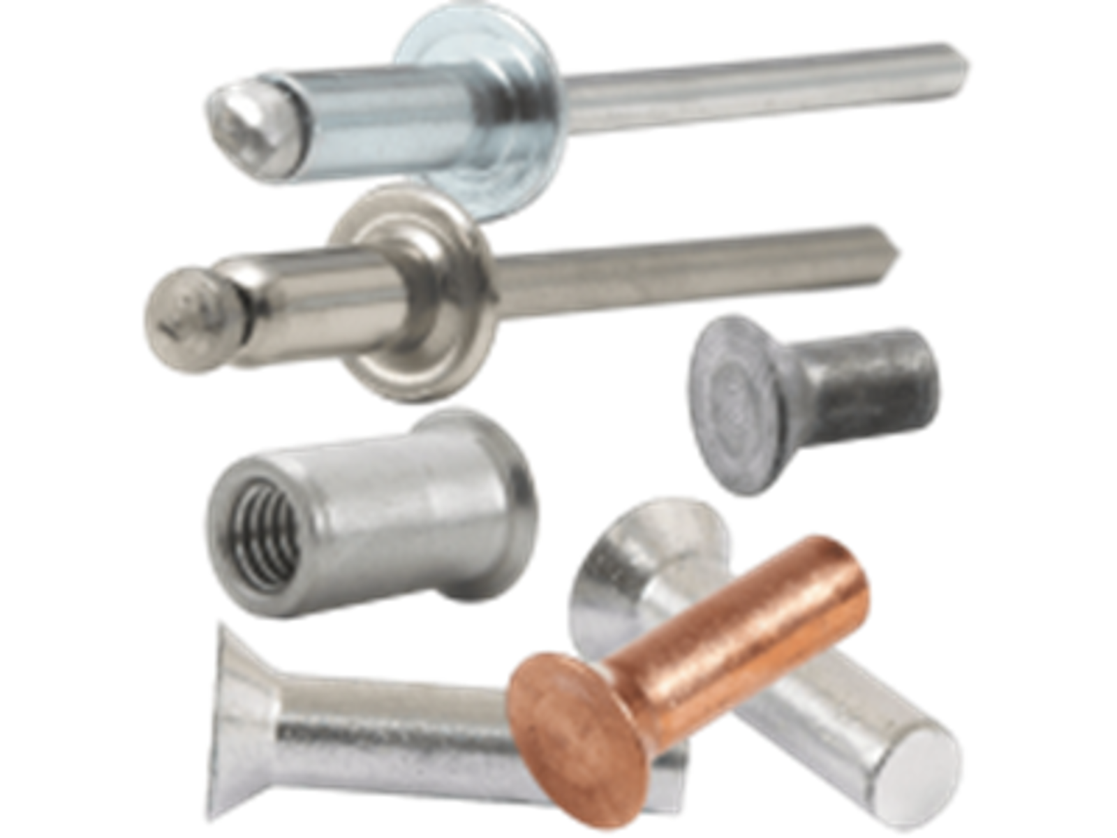 Åben blindnitte - aluminium AIMg 3,5 med elforzinket stålspids. Fås i flere varianter.