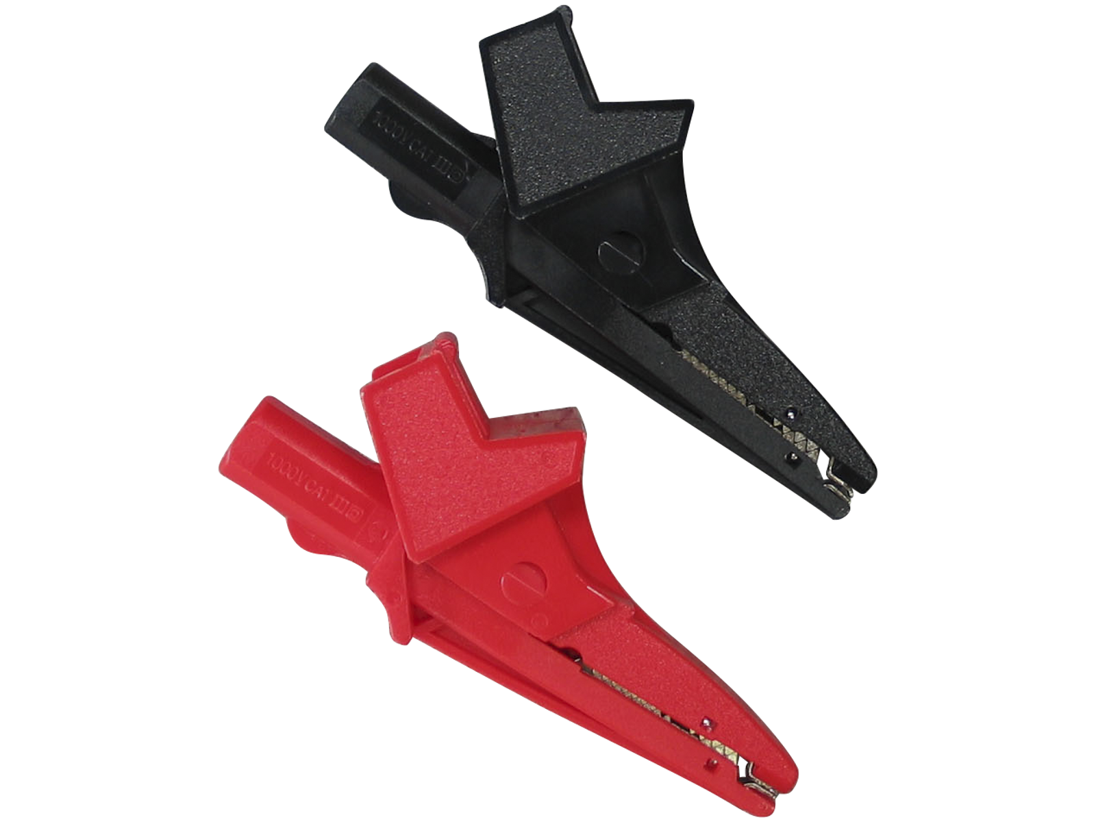 Type 5004, ekstra kraftigt og robust, isoleret krokodillenæb, 1000V/20A. Sæt med 1 rød og 1 Sort.