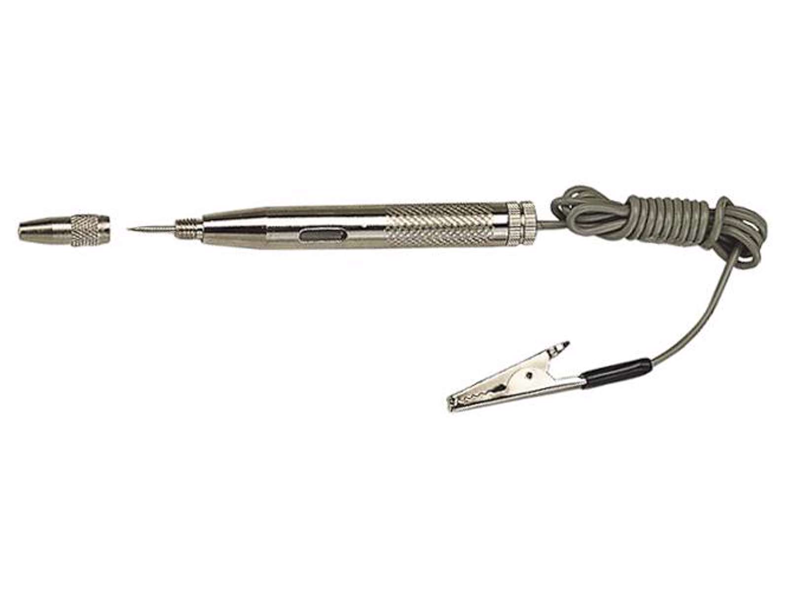 Til kontrol af el-kredsløb på biler. Godt beskyttet glødelampe. Nålespids med beskyttelseshætte, ledning og krokodillenæb.