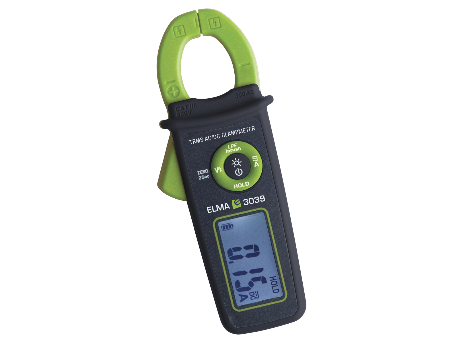 Elma 3037/3039 er et sand RMS tangamperemeter i et meget handy design for nem måling af AC eller AC/DC strømme. Instrumentet har god opløsning helt ned til 10mA, stor belyst display, smart data hold samt automatisk nuljustering. Elma 3037/3039 har low pass filter og "Inrush" til måling af startsstrømme. Med "Volt sense" funktionen kan spænding detekteres berøringsfrit. Instrumentet opfylder IEC 61010-1 KAT III 600V og leveres komplet inkl. batterier og dansk betjeningsvejledning.