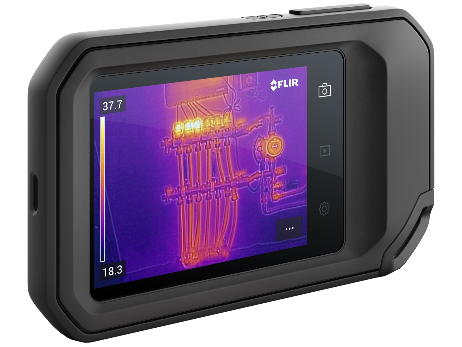 Flir C5 termisk kamera er velegnet til håndværkeren, installatøren og teknikeren, der ønsker at bruge termografi i forbindelse med installation, reparation og fejlsøgning på f.eks. varmeanlæg, eltavler, gulvvarme, tjek af isolering, kuldebroer og andre temperatur relaterede problemer. Super kompakt termisk lommekamera. 160×120 pixel termisk detektor. Indbygget fotokamera 5MP. Indbygget Wi-Fi og automatisk overførsel af billeder til Cloud. Funktionen MSX fremhæver detaljerne, og termobillederne fremstår endnu skarpere. Nem betjening med touchskærm. Dansk menu struktur, manualer, software og support. Leveres klar til brug med indbygget opladeligt batteri, håndledsrem, USB ladekabel, blød taske og manual.