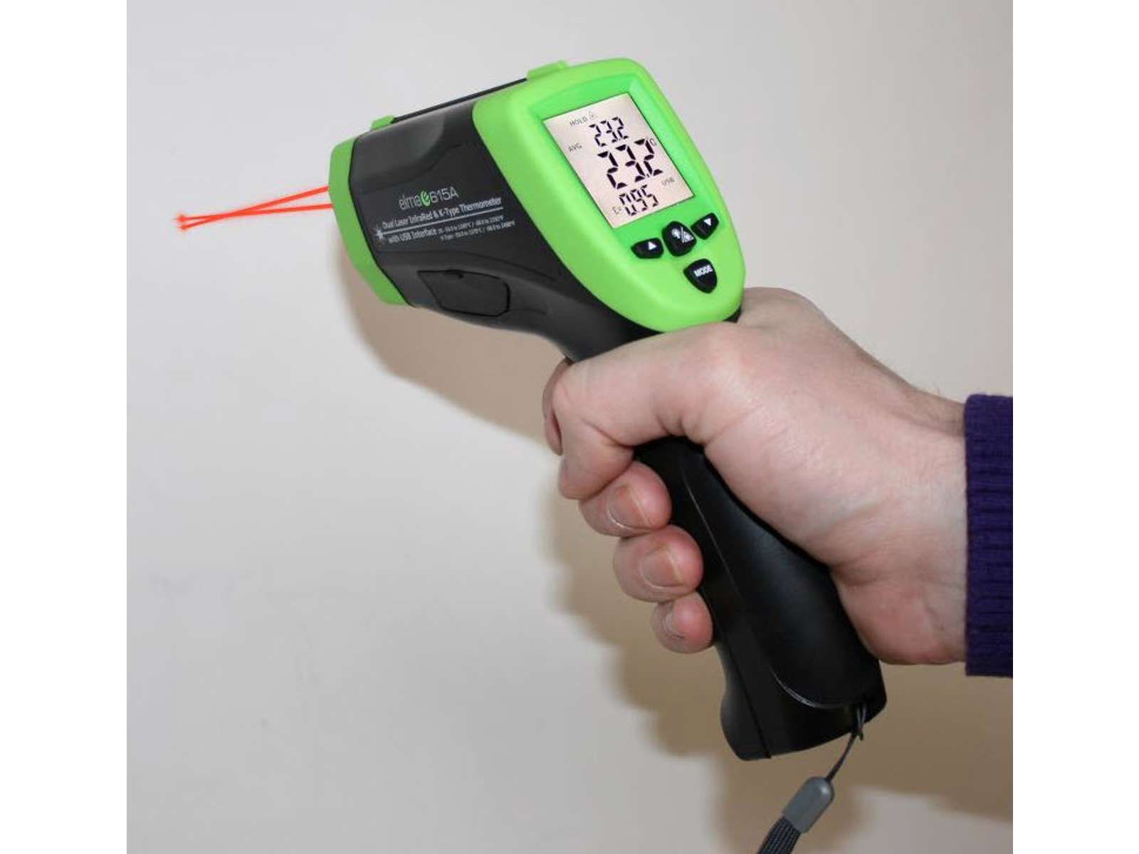 Elma 615A er et professionelt, infrarødt termometer, som er specielt velegnet til måling på større afstande. Elma 615A har også mulighed for måling med type-K føler op til 1370°C. Instrumentet er forsynet med dobbelt lasersigte, som viser, hvor stort et område man skal bruge for, at måle helt korrekt. Med sit måleforhold på 50:1 er instrumentet ideelt, til såvel måling af små arealer, som til målinger foretaget fra længere afstande. Elma 615A har max/min- og gennemsnit, Hi/Low alarmfunktion samt intern hukommelse med plads til 100 dataplaceringer. Med USB funktion er der mulighed for live måleresultater via PC - til visning af både IR og kontakttemperaturer. Med sit ekstremt store måleområde (fra -50°C til 1200/1370°C) er dette termometer anvendeligt i utrolig mange og forskelligartede applikationer. Elma 615A har mange ekstra features bl.a. justerbar emissionsværdi, som gør det muligt, at måle på næsten alle slags overflader uden fejlvisninger i temperaturen. Det er en utrolig vigtig