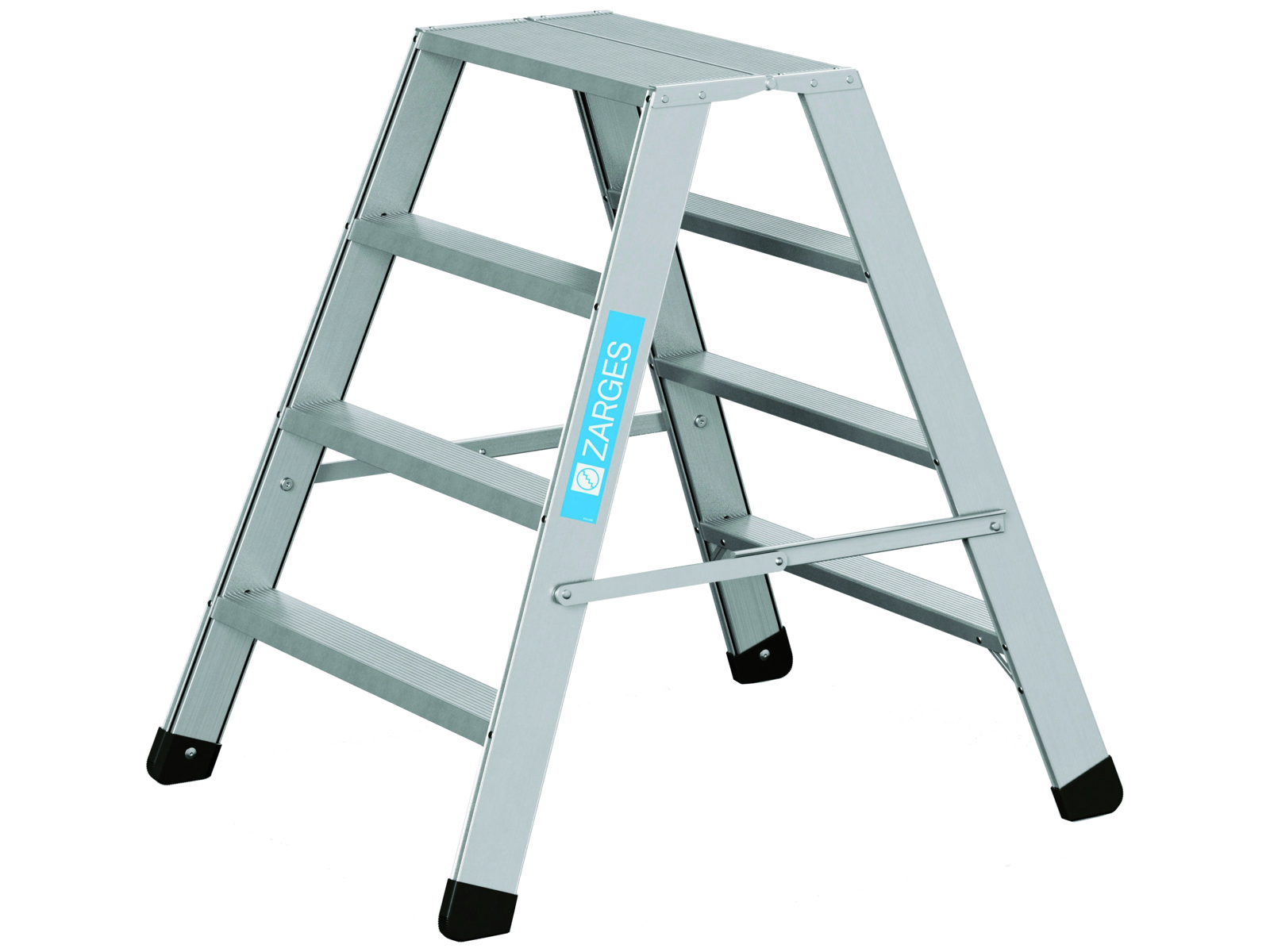 Zarges arbejdsbuk med 85 mm dybe ergonomiske trin på begge sider og platform. Fast forbindelse i begge sider. Højeste stabilitet på grund af platform med integreret hængselsforbindelse. 7-punkt-trin-vangeforbindelse med støttemellemstykke i trinmidten. Opfylder standarden EN 14 183.