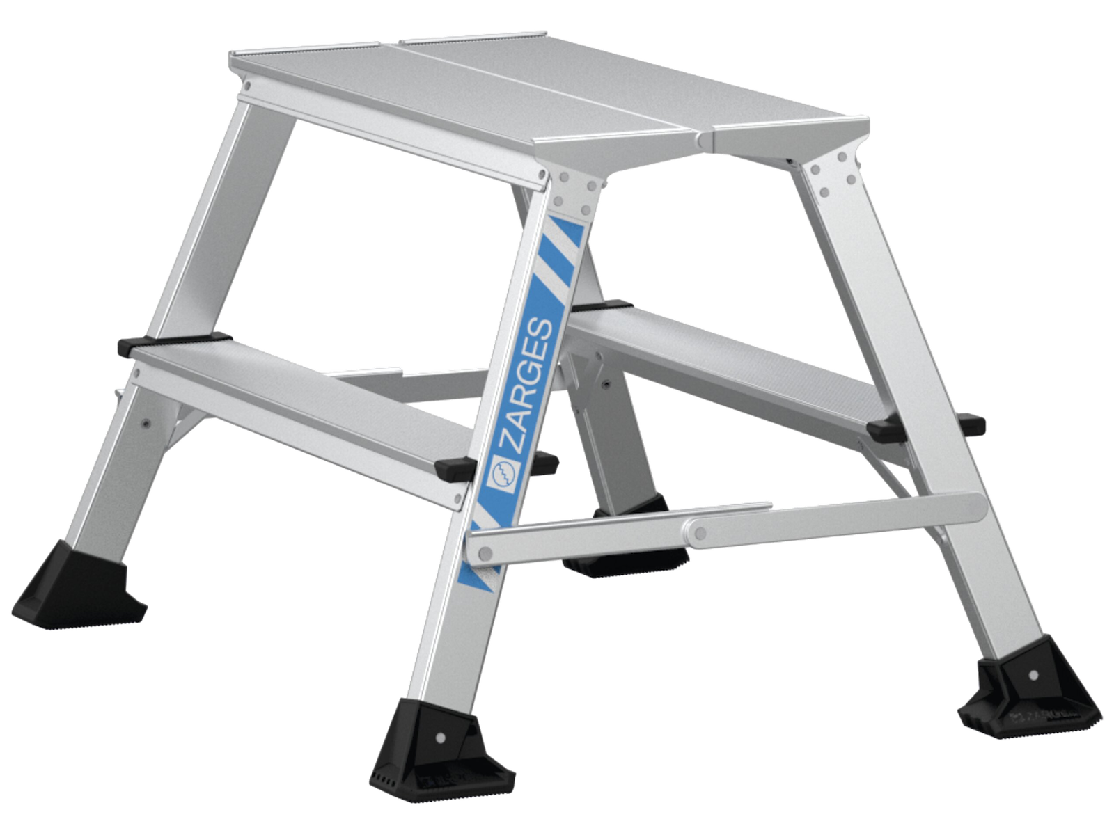 • XL Step P bred - en praktisk og robust arbejdsbuk med ekstra stor platform på ca. 600×300 mm. Ekstra dybe, riflede trin (92 mm) for bekvem og sikker stabilitet. Lodret trinafstand 250 mm. Optimal stabilitet på grund af fast forbindelse i begge sider. Eloxerede vanger. Stigeskodesign af tokomponent-plast - også egnet til arbejde på gitterristflader. Belastning op til 150 kg. Opfylder standarden EN 14183.