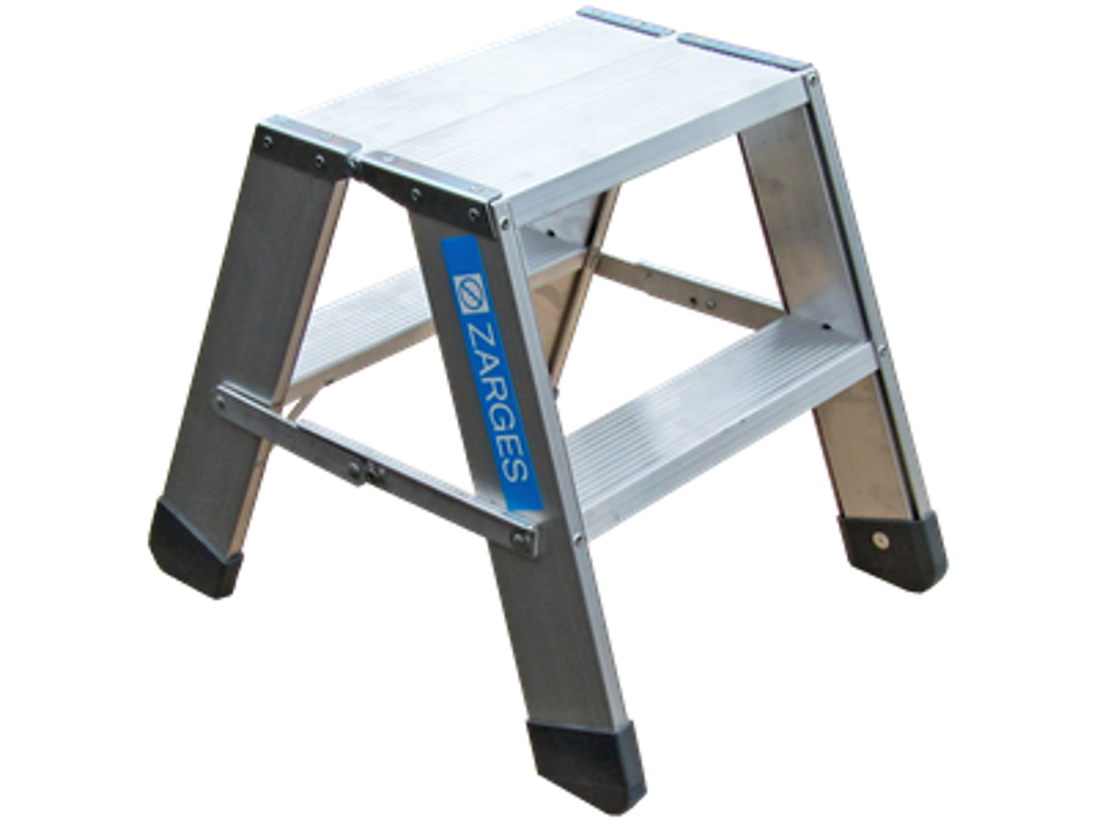 Zarges arbejdsbuk med 85 mm dybe ergonomiske trin på begge sider. Platform 600×300 mm.