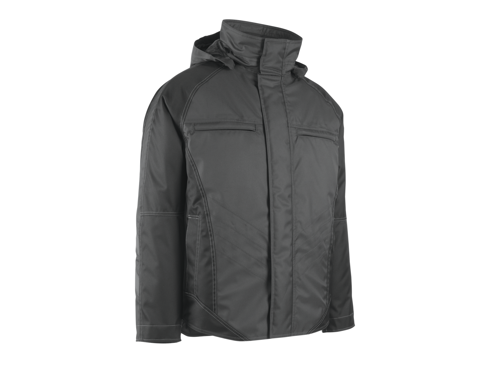 Åndbar, vind- og vandtæt. Sømme er tapede. Hætten er aftagelig, foret og har regulerbar elastiksnøre. For af quiltet fleece. Lukning med lynlås og vindfang med trykknapper.