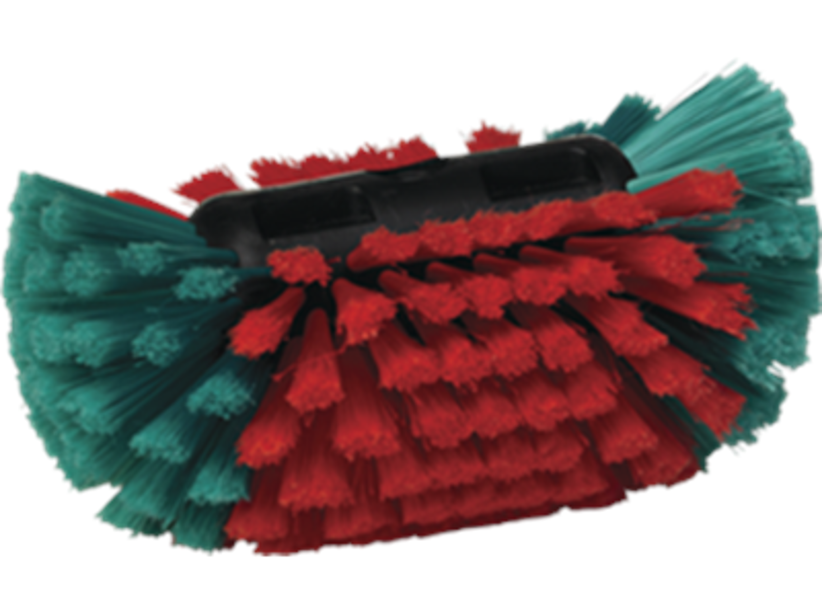 Stor, rund fælgbørste med vandgennemløb, der giver god og effektiv rengøring af dobbelte og enkelte stålfælge på større køretøjer. Polypropylen med bløde/spaltede polyester-børstehår.