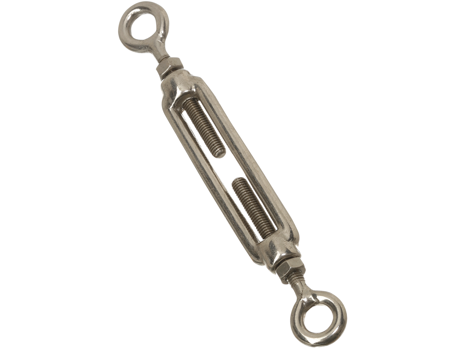 Syrefast, AISI 316 bardunstrammer med to øjer (øje/øje) til stramning af stålwirer. I henhold til DIN 1480.