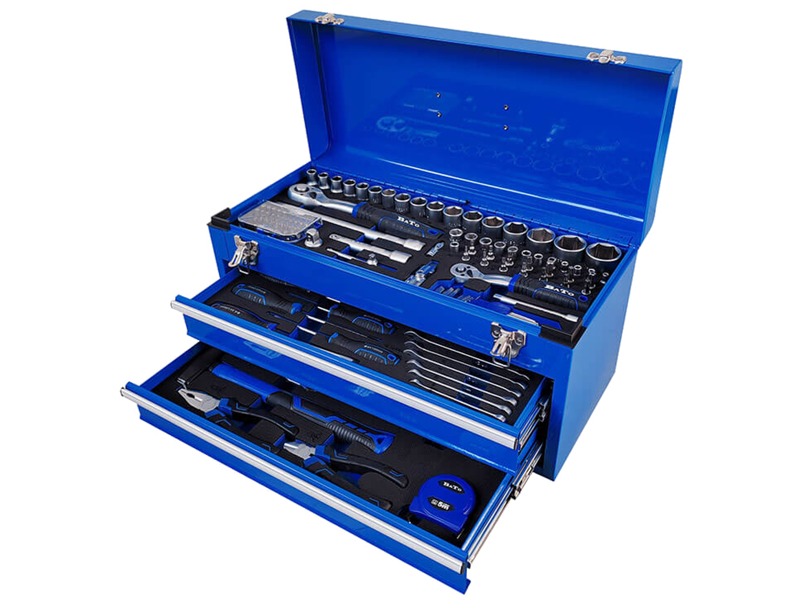 Værktøjssæt med 120 dele fordelt i stålkuffert med to skuffer. Alt ligger i EVA skum. Indhold: