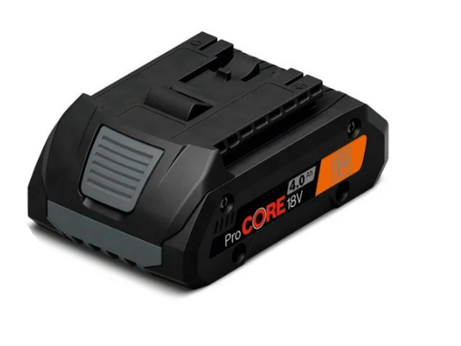 ProCORE li-ion-batteri med Highpower-celler, ladetilstandsindikator og "Electronic Cell Protection" (ECP). ECP beskytter batteriet mod overbelastning, overophedning og dybdeafladning. COOLPACK 2.0-teknologien sørger for en 135 % længere batterilevetid sammenlignet med genopladelige batterier uden COOLPACK-teknologi og muliggør dermed længere driftstider. Kompatibel med alle batteridrevne 18 V-apparater med AMPShare eller Bosch Professional 18 V grænseflade for genopladeligt batteri.