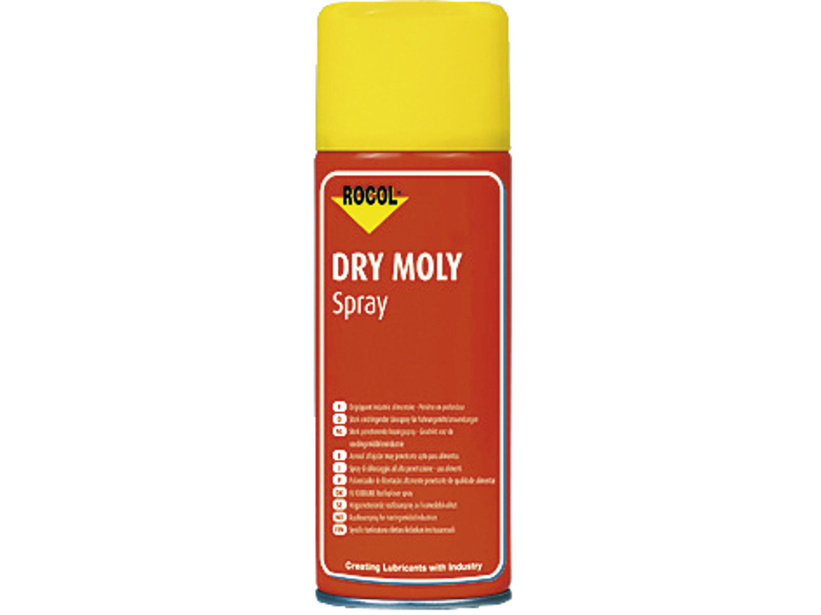 ROCOL DRY MOLY SPRAY giver en tør, dækkende film af molybdændisulfid (MoS2), der reducerer friktion og slid, samt forebygger blokering af gevind forårsaget af støv, snavs, høje temperaturer eller store belastninger. Fremragende vedhæftningsevne på alle metaller og alle overflader. Produktet giver livsvarig smøring ved lette belastninger. Ved sværere belastninger anbefales gensmøring. Den hærdede smørefilm af molybdændisulfid modstår tryk op til 7000 kg/cm², afviser støv og snavs og kan anvendes til brug ved temperaturer på op til + 450°C. DRY MOLY SPRAY anvendes som tørfilmsmøring på vanger, gear, glidelejer, slæder, ventiler, tandhjul mv. Alternativt kan DRY MOLY SPRAY anvendes som anti-seize film på præcisions-gevindforbindelser eller som slidbestandig forbehandlings-smøremiddel til svært belastede flader, der traditionelt smøres med olie eller fedt. Egenskaber og fordele: Modvirker rivninger og opsamling af metal. Modstår høje belastninger. Livsvarig smøring ved lette belastninger.