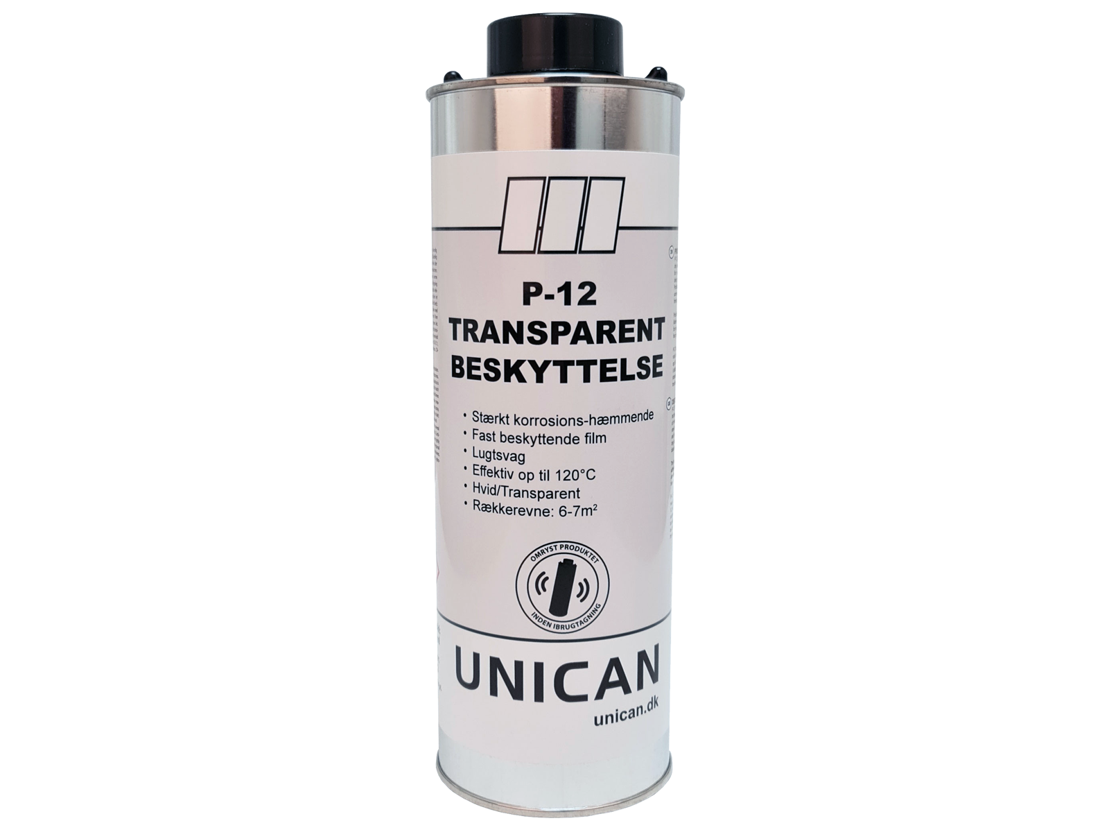 P-12 transparent beskyttelse kan yderst effektivt anvendes som korrosions/rustbeskyttende film på alle former for metal overflader som værktøj, maskiner, maskindele, stålkonstruktioner samt saltspredere og samledåser. Produktet er desuden også formidabelt til beskyttelse af sammenmonterede bolte og møtrikker for at sikre mulig fremtidig adskillelse.