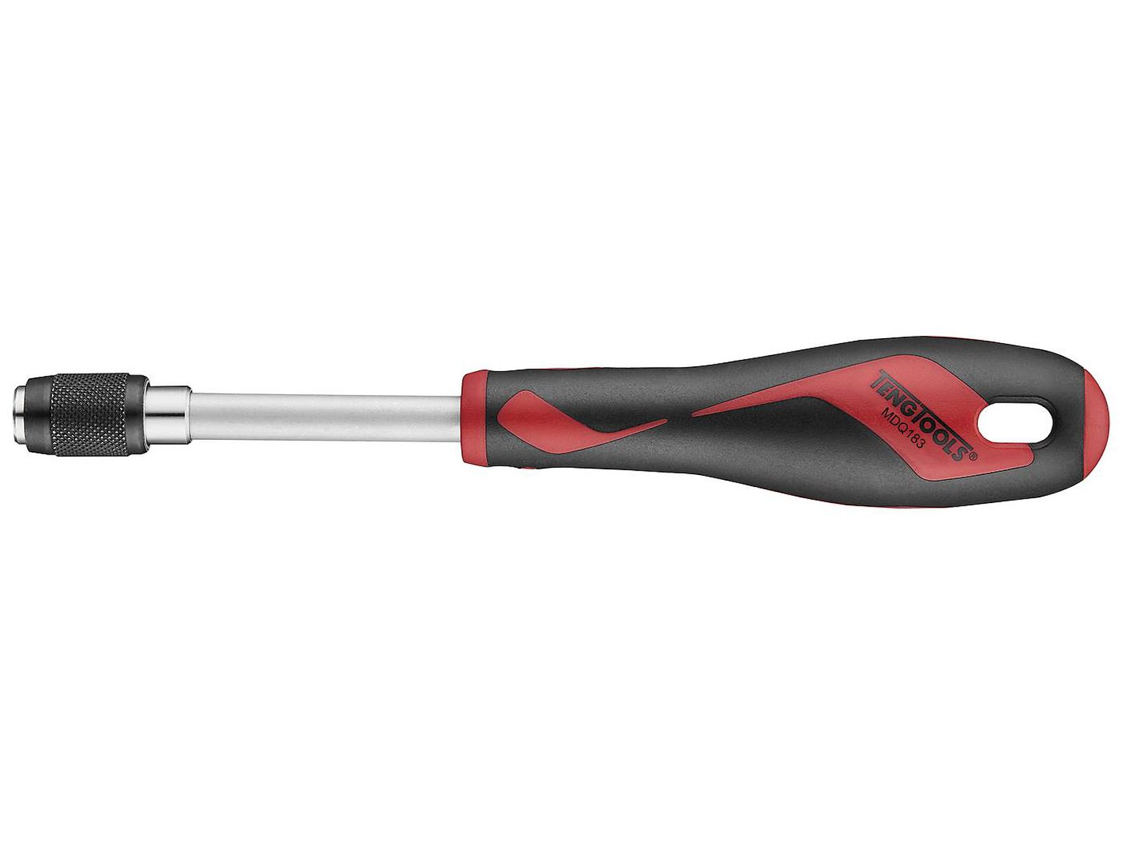 Bitsskruetrækker med hurtigspændepatron. Rund klinge i krom-vanadiumstål. Ergonomisk tokomponentskaft i størrelsen Small med ophængningshul.