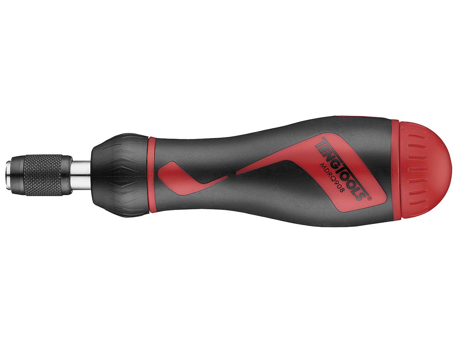 Bitsskruetrækker med skralde til 1/4'' bits med hurtigspændepatron. Tokomponentskaft med. Inklusive 5 bits og adapter som opbevares i skaftet.