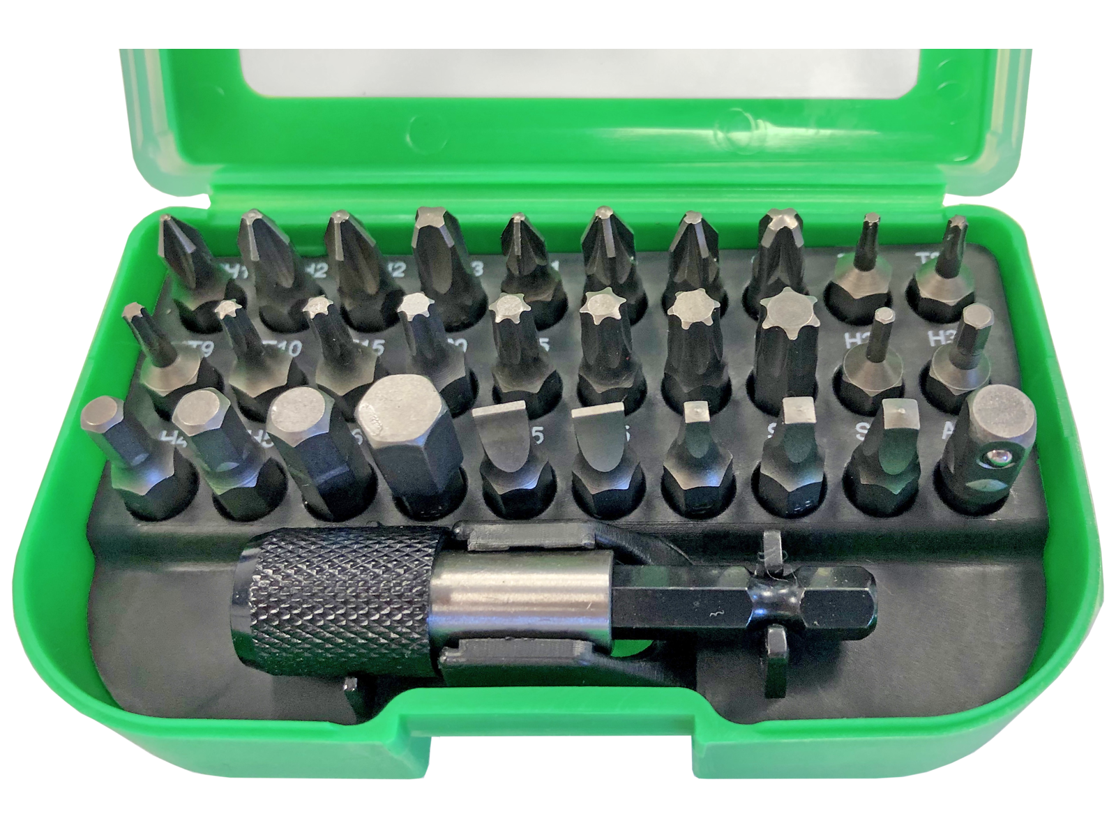 Bitssæt med 31 dele. Indeholder 30 assorterede kvalitetsbits i S2 stål samt bitsholder med 1/4" 6kt-skaft. Leveres i praktisk plastæske med bælteclips.