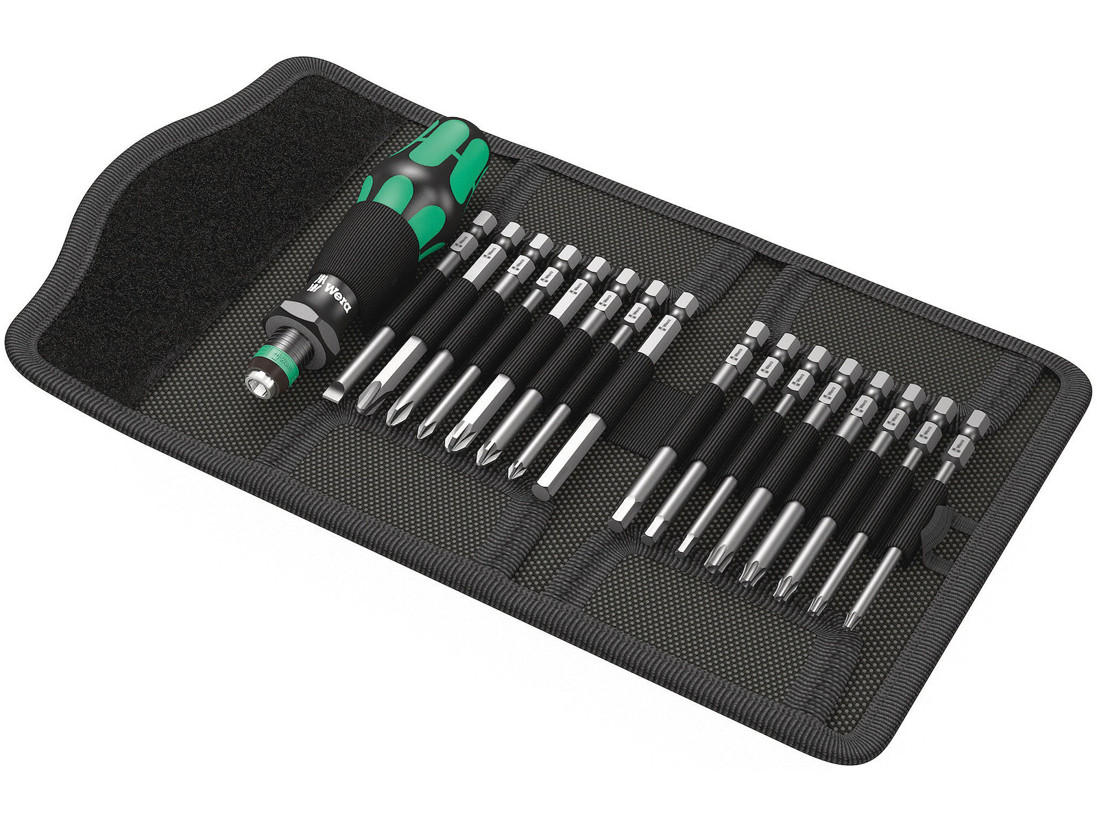 Kraftform Kompakt sæt med 17 dele - udskiftningsklinger og håndgreb. Greb/udskiftningsklinge-systemet tillader lynhurtig udskiftning af den påkrævede klinge og giver dermed mangfoldige anvendelsesmuligheder. Kraftform grebet giver mulighed for stor kraftoverførsel via de skridsikre bløde områder og høj arbejdshastighed via de hårde områder på grebet. Sekskantet rullestop forhindrer at værktøjet ruller væk på arbejdsstedet. Sættet indeholder klinger i længden 89 mm for: Philips: PH1 / PH2 / PH3, Pozidriv: PZ1 / PZ2 / PZ3, Torx med boring: TX10 / TX15 / TX20 / TX25 / TX30, ligekærv: 1 × 5,5 mm, Hex-Plus: 3 mm / 4 mm / 5 mm / 6 mm. Derudover: Kraftform Kompakt håndgreb. Leveres i robust foldetaske.